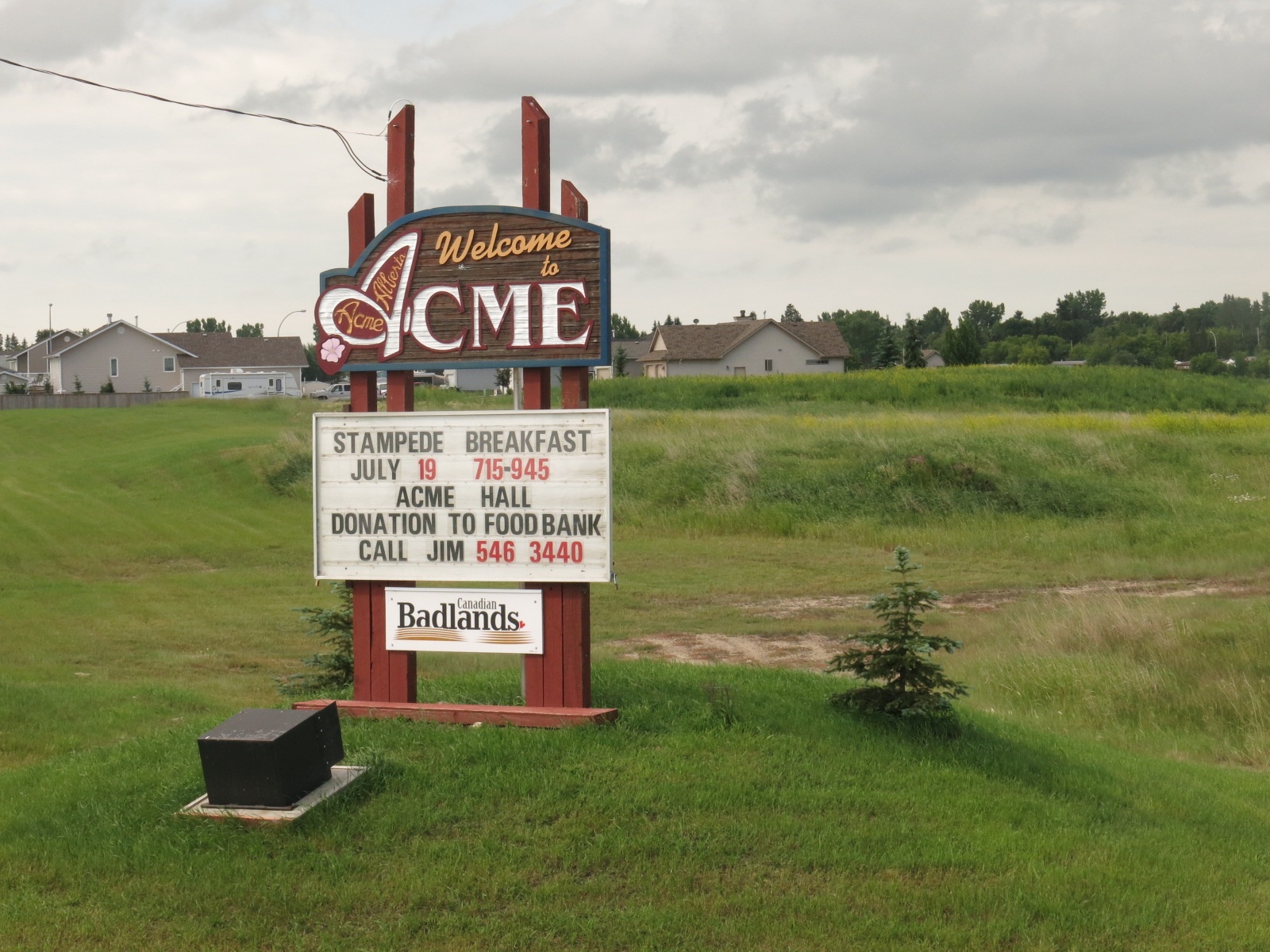 We (Michel, Elaine and me) had another early start. The first 30 km was fairly easy with a NW wind giving us a bit of a tailwind, then we turned north towards Acme into a headwind. The next 20 km or so were a tough grind. In Acme we stopped at a bakery where I thoroughly enjoyed a cinnamon bun and a coffee.