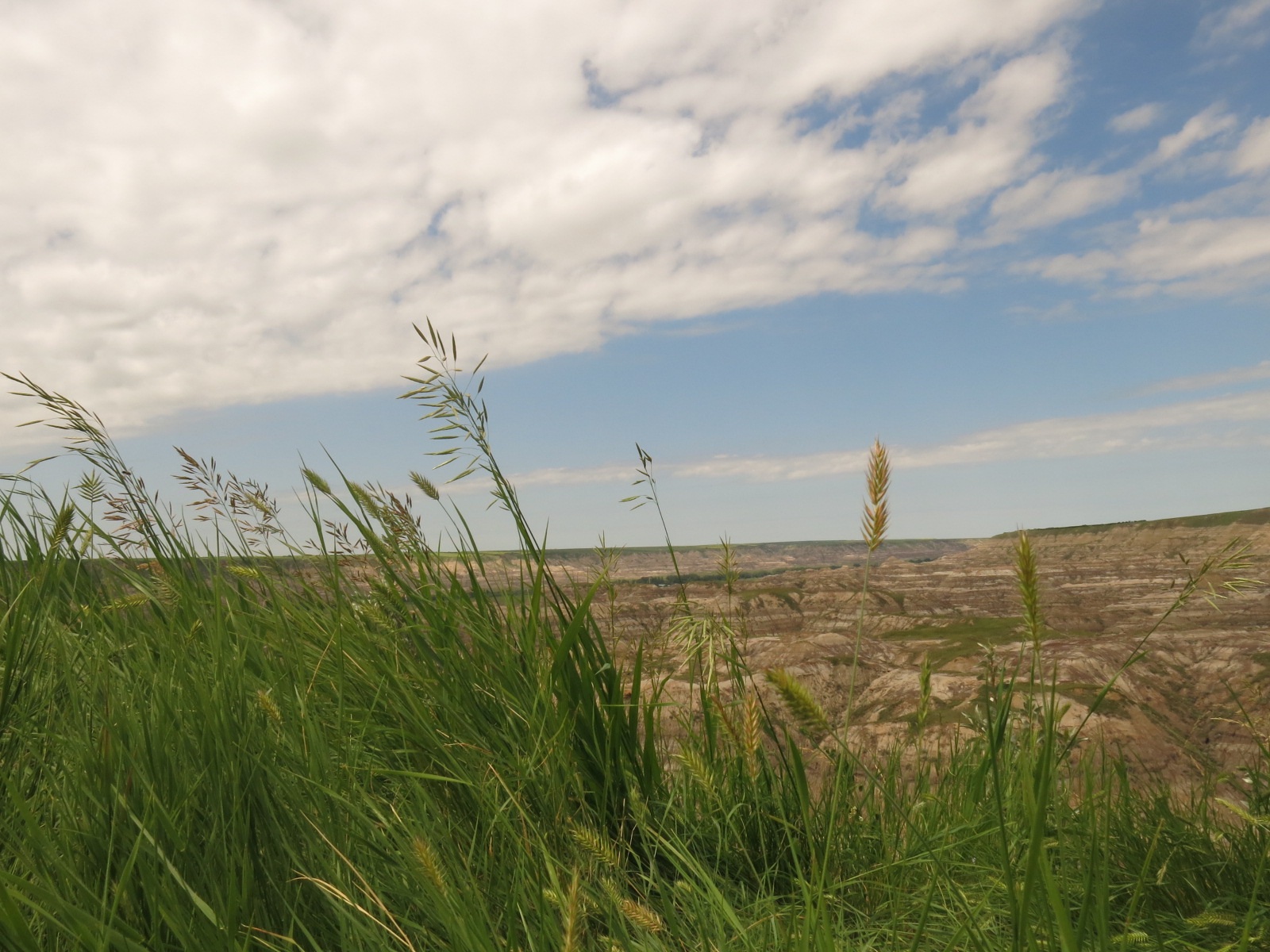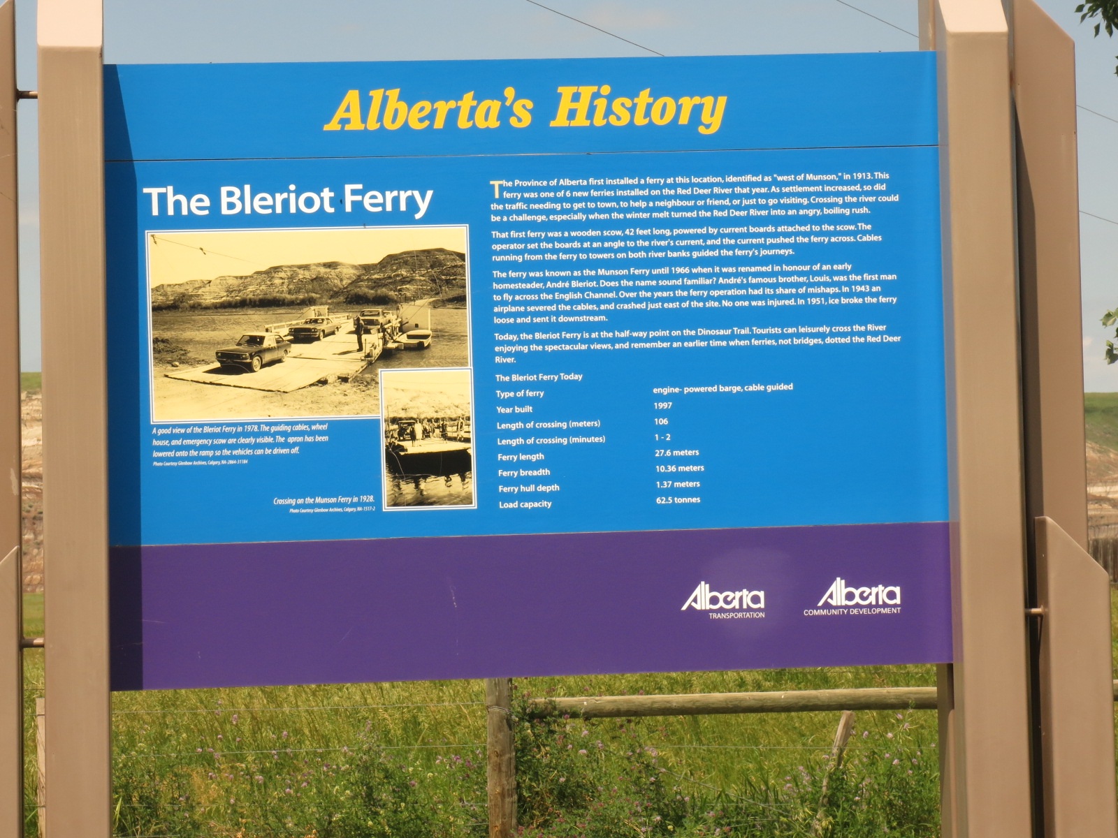 As we got to the bottom of the hill down into the Red Deer Valley we took the turn to the Bleriot Ferry. We rode through the Badlands for a bit we rode back up out of the valley. The hill was about 1.5 km long and up to a 12% grade. At the top we were back riding through farmland again. Looking around you couldn’t see any evidence of the Badlands we had been riding through a few minutes earlier.