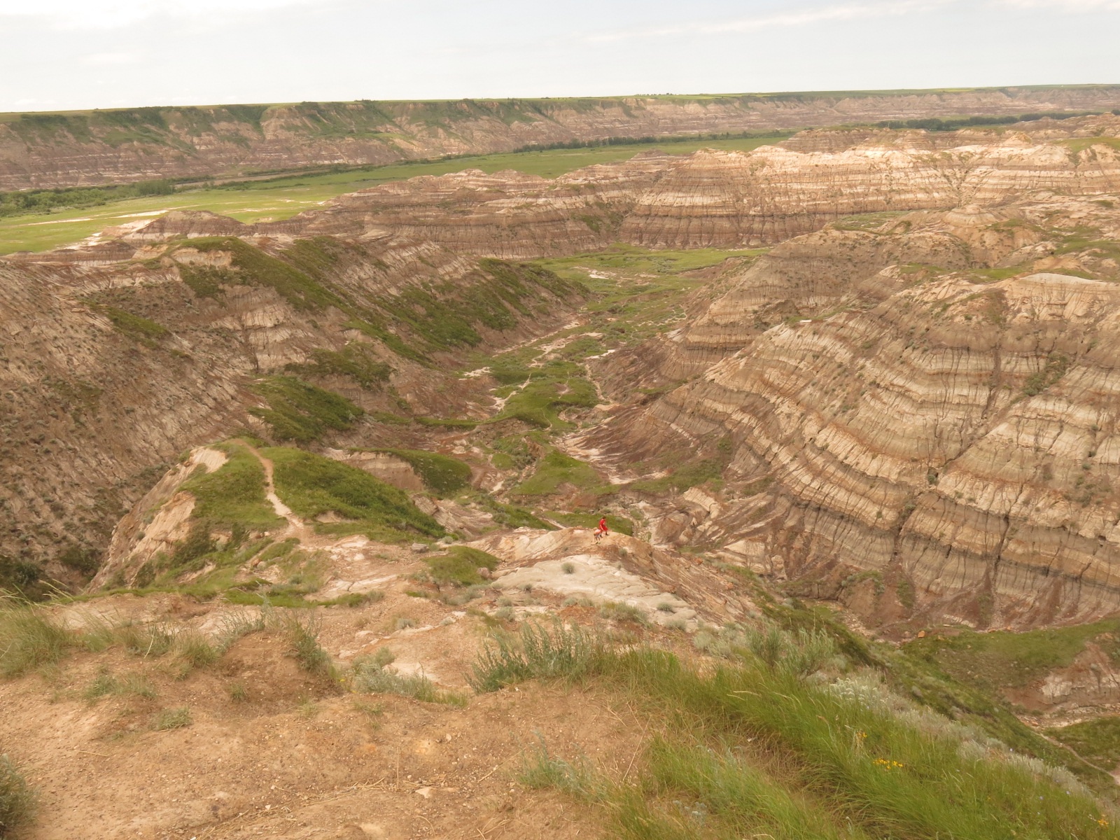 Several kilometres further we again descended into the valley to the ferry. After a short wait we were on the ferry crossing the Red Deer River. On the other side we were again faced with a steep hill. This one was a bit shorter but was pretty much a 12% grade all the way up. It was a pretty tough grind but soon enough we were at the top.