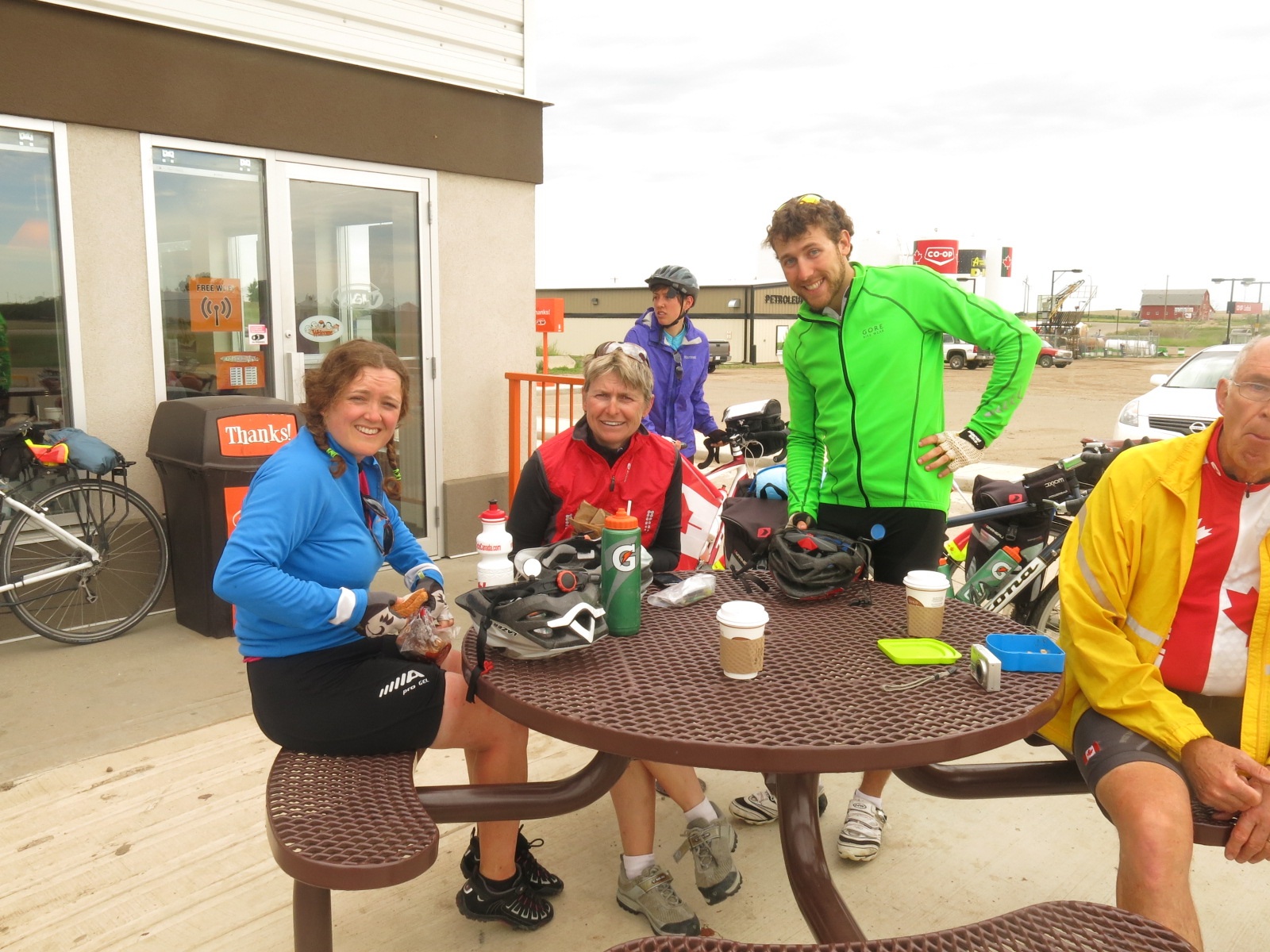 We had an early breakfast today as everyone wanted to get going early on our 145 km ride to Kindersley. As our crew was cooking dinner we had a little extra incentive to get going so we could arrive early and get dinner started.