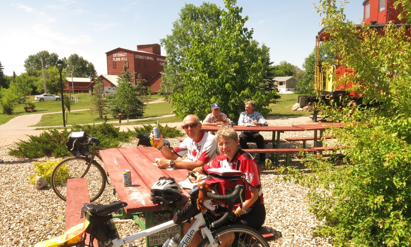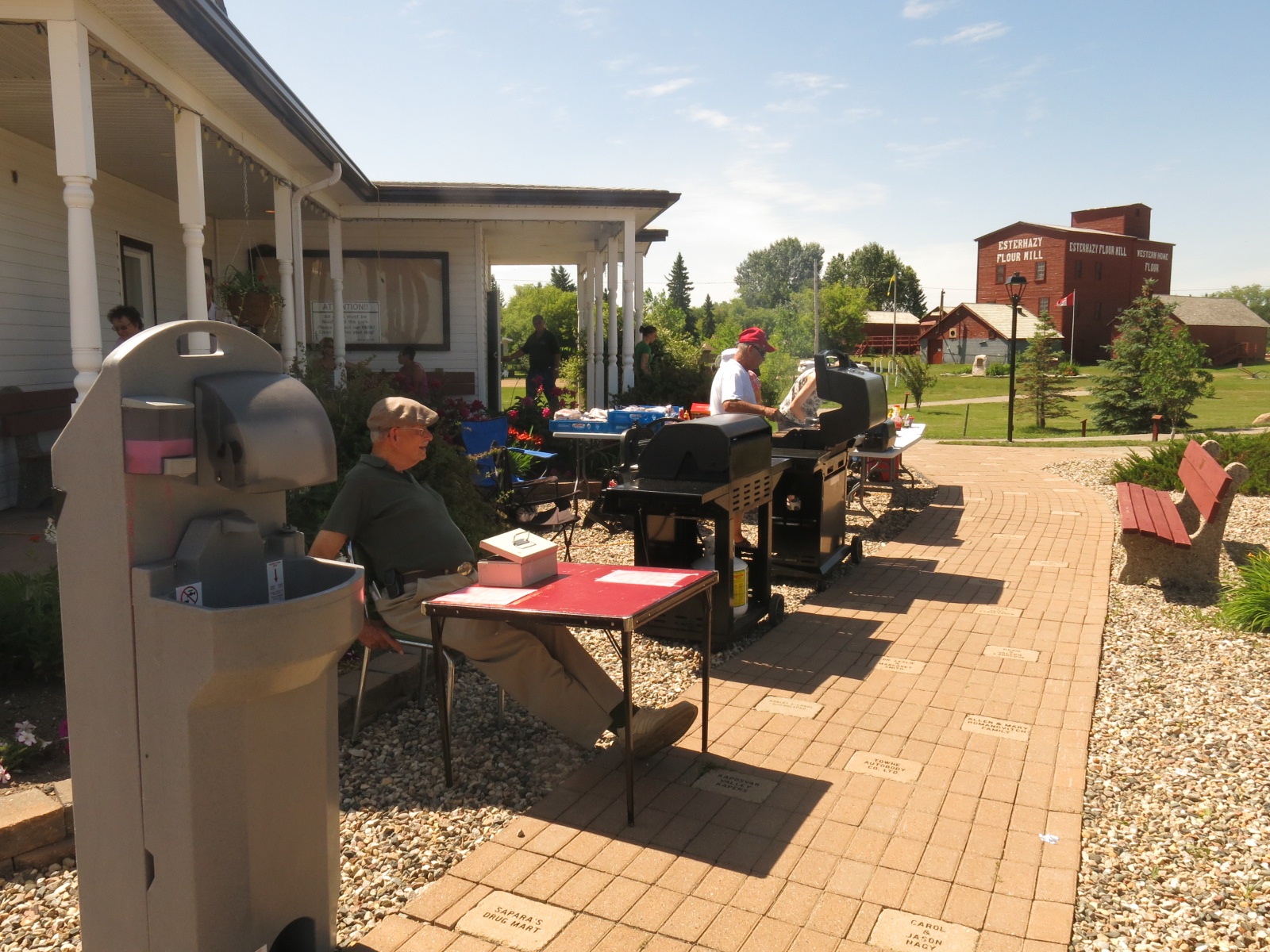 At the Stockholm Junction we stopped for coffee. Just before we left Rob and Mike arrived. About 15 km further we came to Esterhazy, a town in heart of potash country. Stopping at the visitor Center we discovered a barbecue luncheon underway. A group was cooking hamburgers and hot dogs as a fund raiser for the restoration of the local historic mill. A cheese burger and iced tea set me back $5.50 – a real bargain!