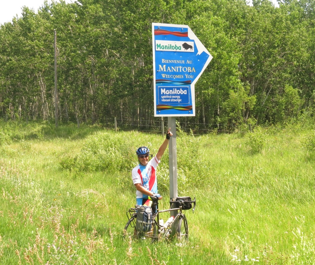 At the border we celebrated entering province #4. A few kilometers into Manitoba we descended into the Assiniboine River Valley. It was quite picturesque. The climb out of the valley was long and in the heat of the day (about 30 degrees) proved to be a real workout.
