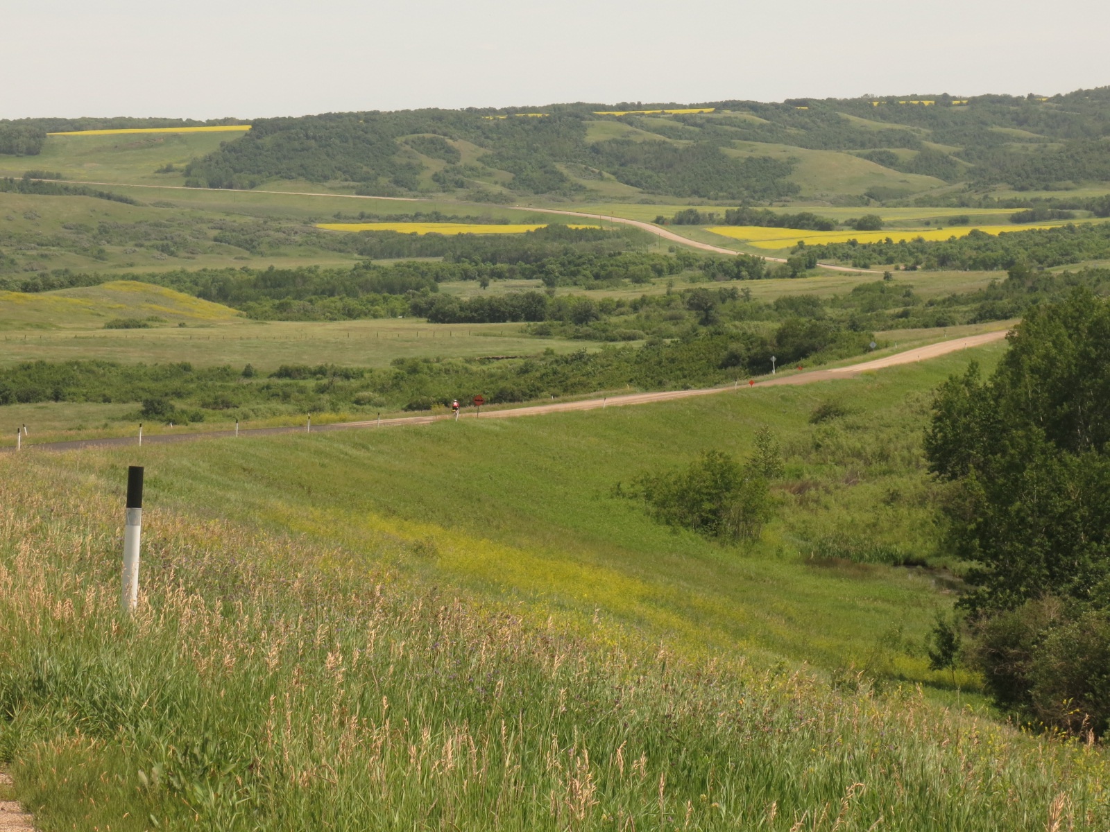 We continued to ride through the Qu’Appelle Valley for the first 35 k or so before turning to climb out of it. With a light tailwind the ride was quite pleasant although the climb was tough. Soon though we were back on the prairie.
