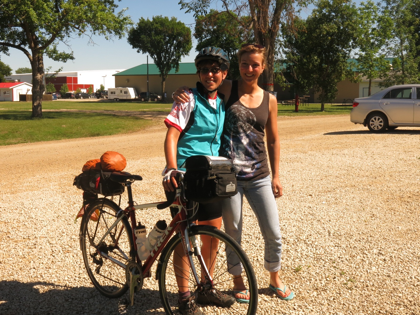 Eventually we turned onto the Trans Canada Highway. Oh joy! The 7 km section before we turned off to Portage had a gravel shoulder. Actually although it was tough riding it probably wasn’t the worst Manitoba road we were on. Is this province going for the distinction of having the worst highways in the country? Certainly they have been the worst of the four provinces we’ve been in so far.