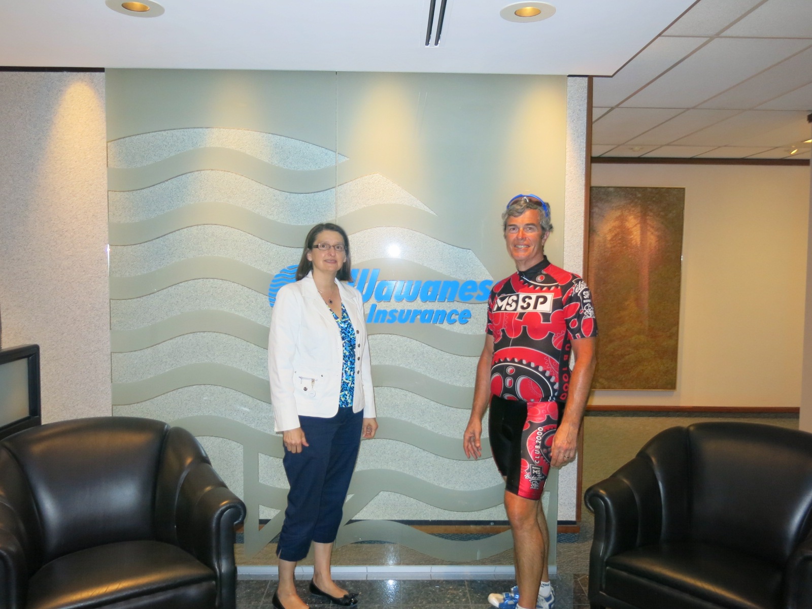 Soon we were in Winnipeg making our way to the Forks. As we approached Main Street I took a detour to the Wawanesa building where I spent about 30 minutes visiting with Barbara and several other former work colleagues. Then it was on to The Forks where we had something to drink and ate a sandwich.