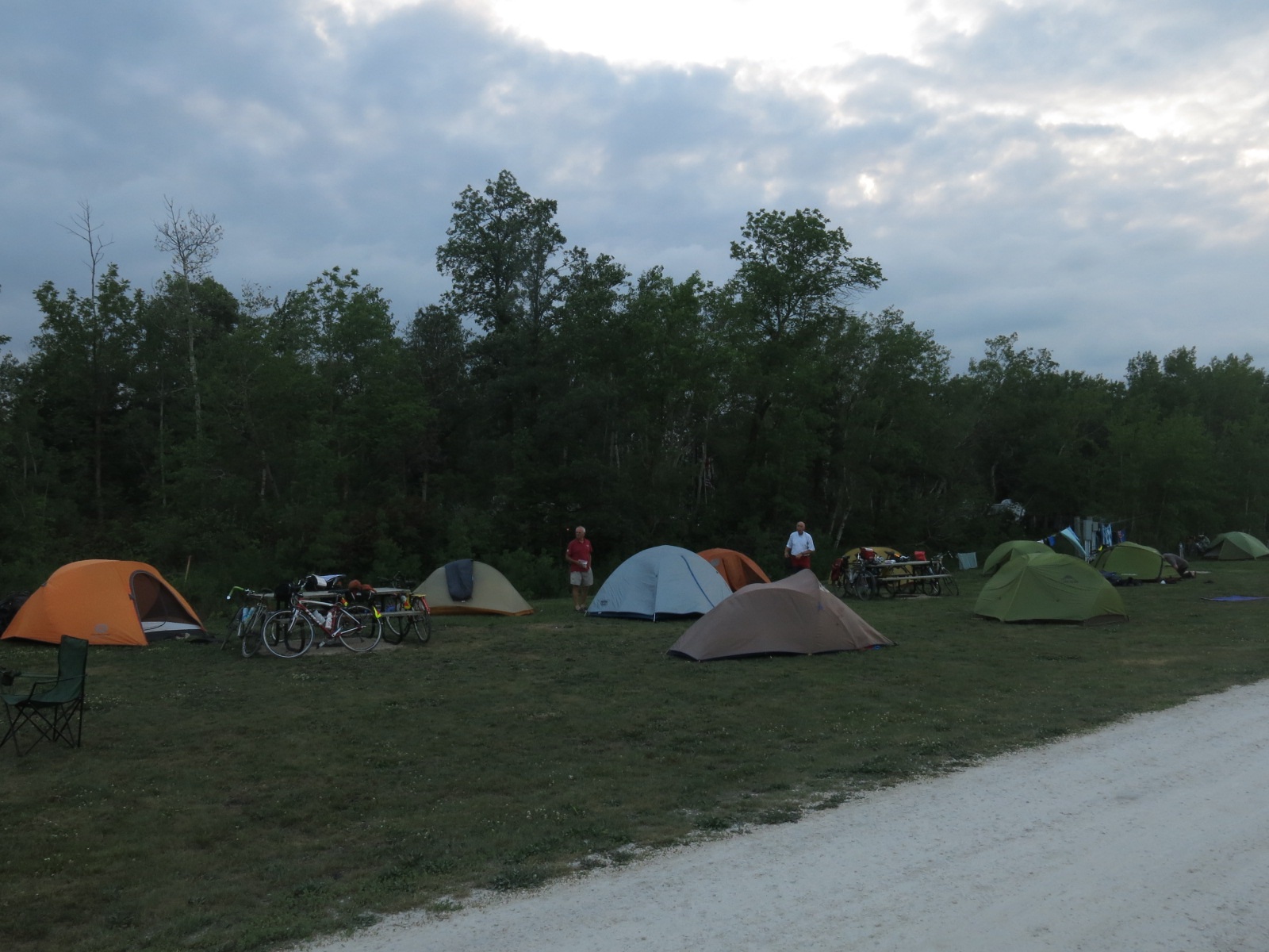 With nearly 70 km left to go we didn’t have time to look around The Forks. A short ride brought us to the Northeast Pioneer Greenway Belt which is a beautiful paved bike trail that takes you almost right out of the city. From the north end of the city it was about 50 km of riding with no convenience stores along the way to stop at for a snack or to refill a water bottle. It was a hot afternoon and by the time we rolled into Beausejour all three of my water bottles were empty. We stopped at the first store we came upon and I bought a .5 litre Gatorade and a 1 litre chocolate milk and downed them both. After resting a bit we rode the remaining few kilometres to camp.