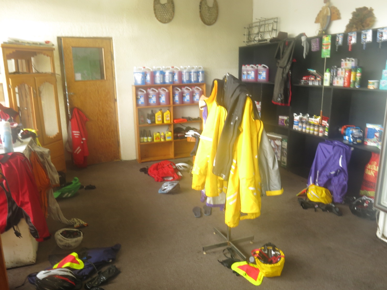 At about 45 km into the morning we stopped at a little cafe. A number of riders had arrived before we got there and the store part of the building was full of wet riding gear hanging everywhere. The cafe and store was run by one guy and the menu was fairly limited. A couple of fellows had ordered eggs and sausages with hash browns. A hot chocolate would have been very welcome but he didn’t have any so I settled for an order of toast and coffee. While we were eating the rain stopped. Luckily that was the end of it for the day.
