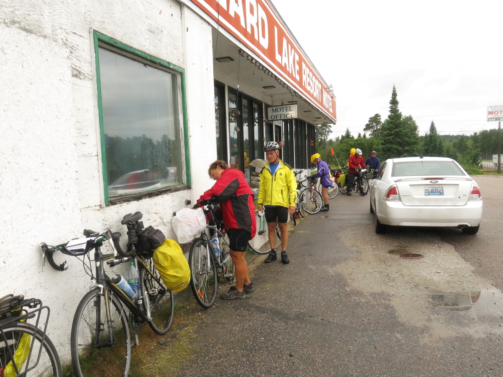 We rode another 20 km and stopped at a cafe that did have chocolate milk. A group of us sat at a picnic table and had our first sandwiches of the day.