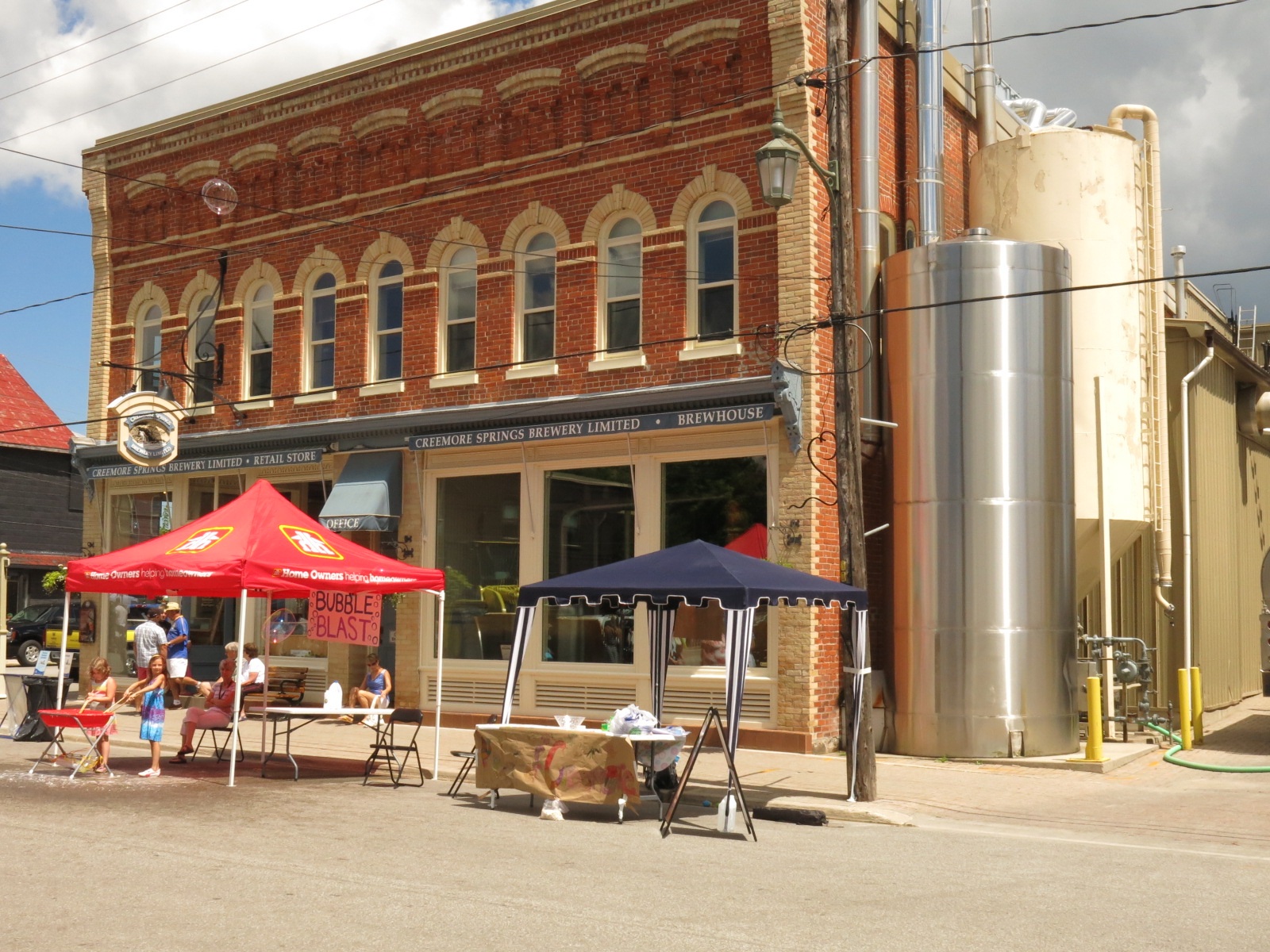 Around 1 pm we rolled into Creemore. Much of the Main Street was closed to traffic for the Childrens Festival. There were lots of booths set up and lots of families all up and down the street. It looked like they were having a great time. We found a bakery where we had a bite to eat. Right across the street was Creemore Springs Brewing Company. If I wasn’t riding it would have been nice to try out their pub and have a beer, but alas we still had another 50 km to ride.