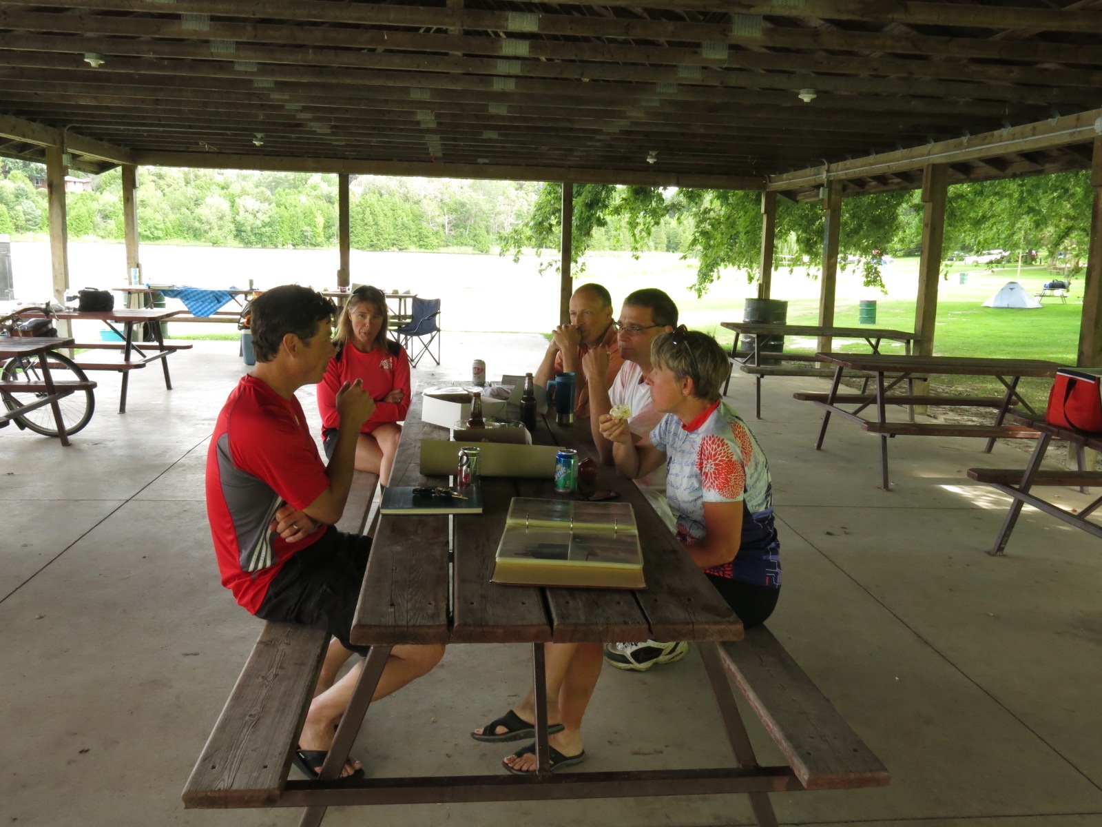 When we arrived at camp in Tottenham there were several more TdC 1988 Vets there to greet us. It was great meeting them and hearing some of their stories. Of course they were also interested in hearing our stories as well. One fellow had brought his photo album from the tour. Wow, how times have changed. We were surprised to learn that there were about 30 riders in that first year. It sounded like most of them had read about the tour in a newspaper article and signed up from there. One fellow who had come from Guelph with his son (I’m sorry I can’t remember names) said he was 19 in 1988 when he did the tour.