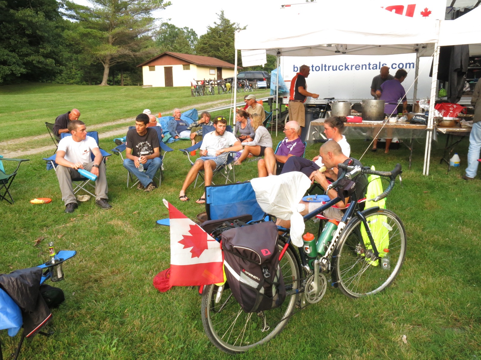 For most of the afternoon we were riding alongside Lake Ontario. In many areas we were close enough that you could feel the spray off the waves crashing on the shore. Just outside Bath we stopped at a park that had a chip truck parked in it. I bought a small bag of fresh cut fries (I saw her cut the potatoes) to go with my PBJ sandwich. Definitely gourmet fare!