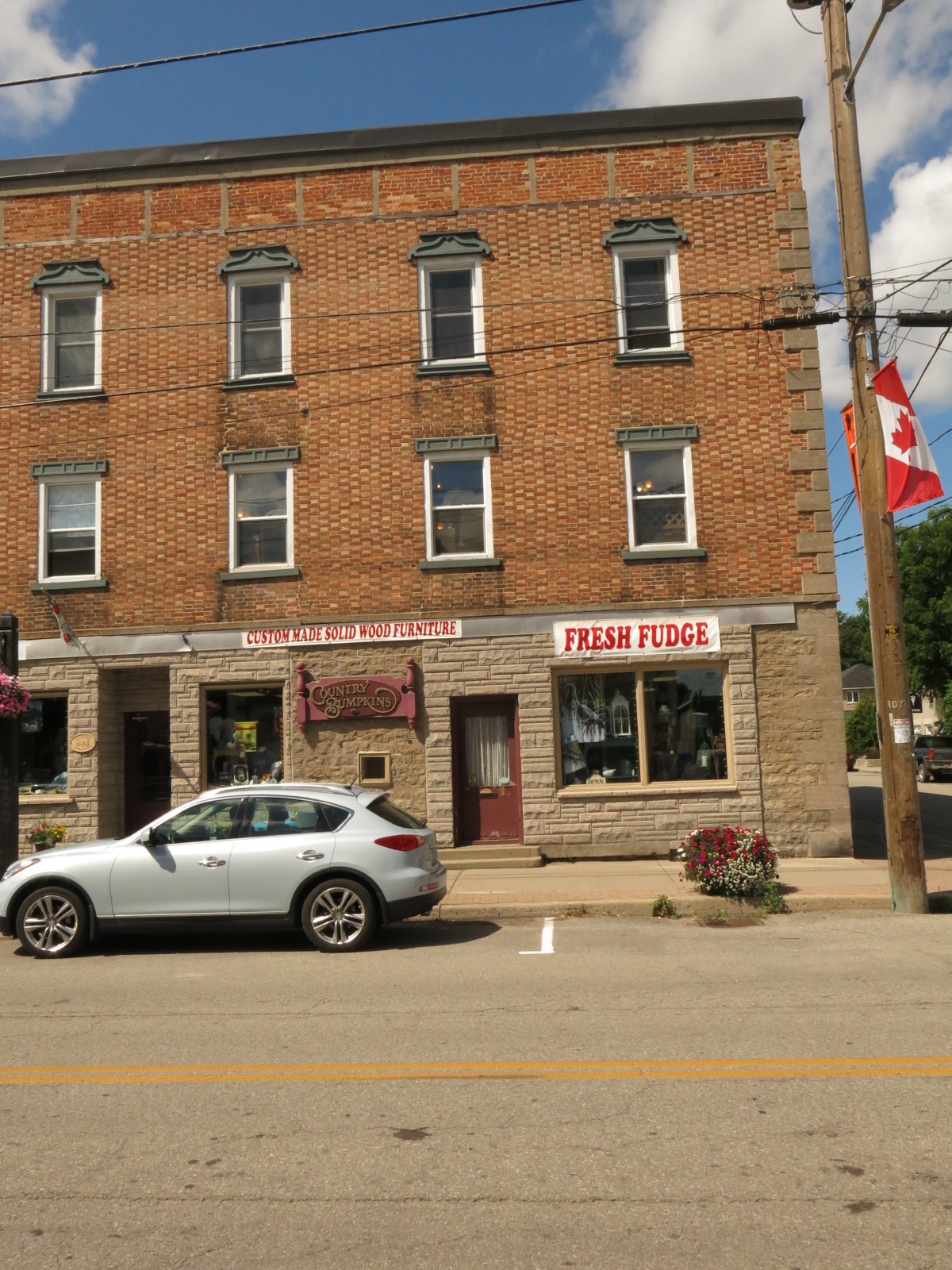 Our first real stop is in Merrickville at The Village Bean Coffee House. At a third of the way into the ride I enjoy my latté and lemon loaf. Merrickville is yet another beautiful little toawn with lots of old buildings along the main street. The coffee shop is right across from a business selling fudge and right next door to an ice cream parlor. I show great restraint and resist both temptations.