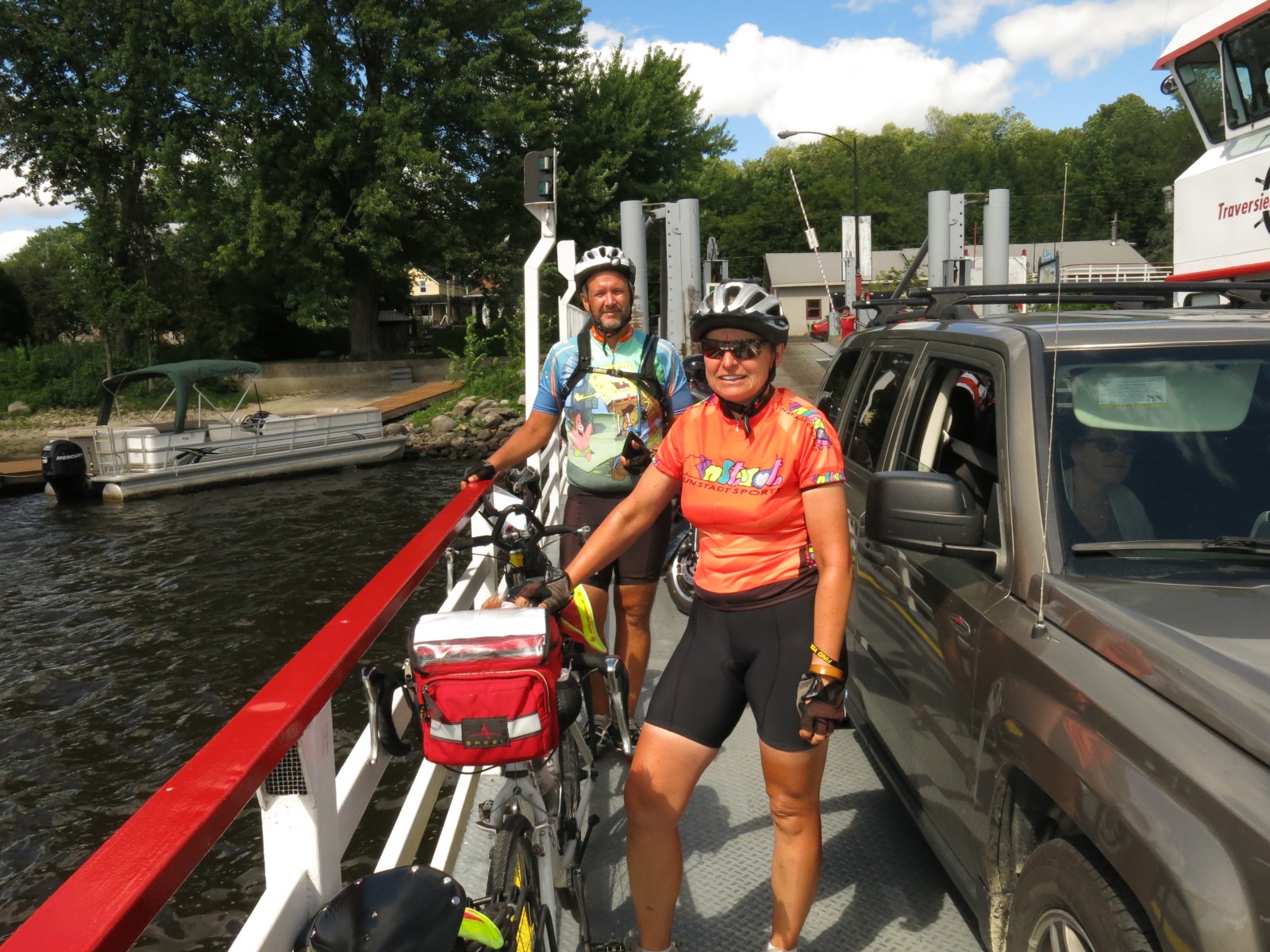 On the other side we stopped for ice cream right by the ferry dock. As we were finishing Jacques and Alain arrived on the next ferry and decided to stop as well. As Jacques was looking to lean his bike against the building the owner yelled at him none too politely not to lean it against his flower box. Now there are polite ways to ask this, which wouldn’t have offended anyone, and there is yelling rudely. This guy opted to act like a total asshole and it cost him two customers. Obviously he had missed the customer relations course. We too regretted having spent any money at his establishment.