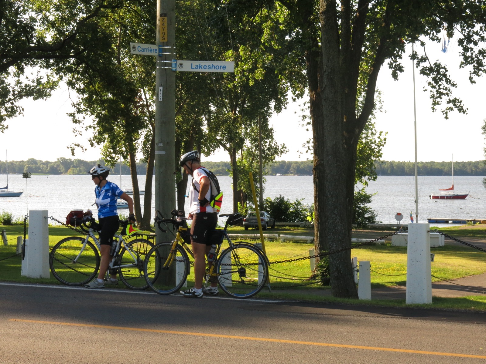 imageOur distance today was short but we wanted to have time for a leisurely lunch in Old Montreal so we got off to an early (7:00 am) start. Eric joined Elaine and me again today. We had three objectives for today: find a bakery around 40 km, have a Montreal smoked meat sandwich and beer for lunch in Old Montreal, and ice cream late in the ride. We realized that it was a tall order but felt we were up for the challenge.