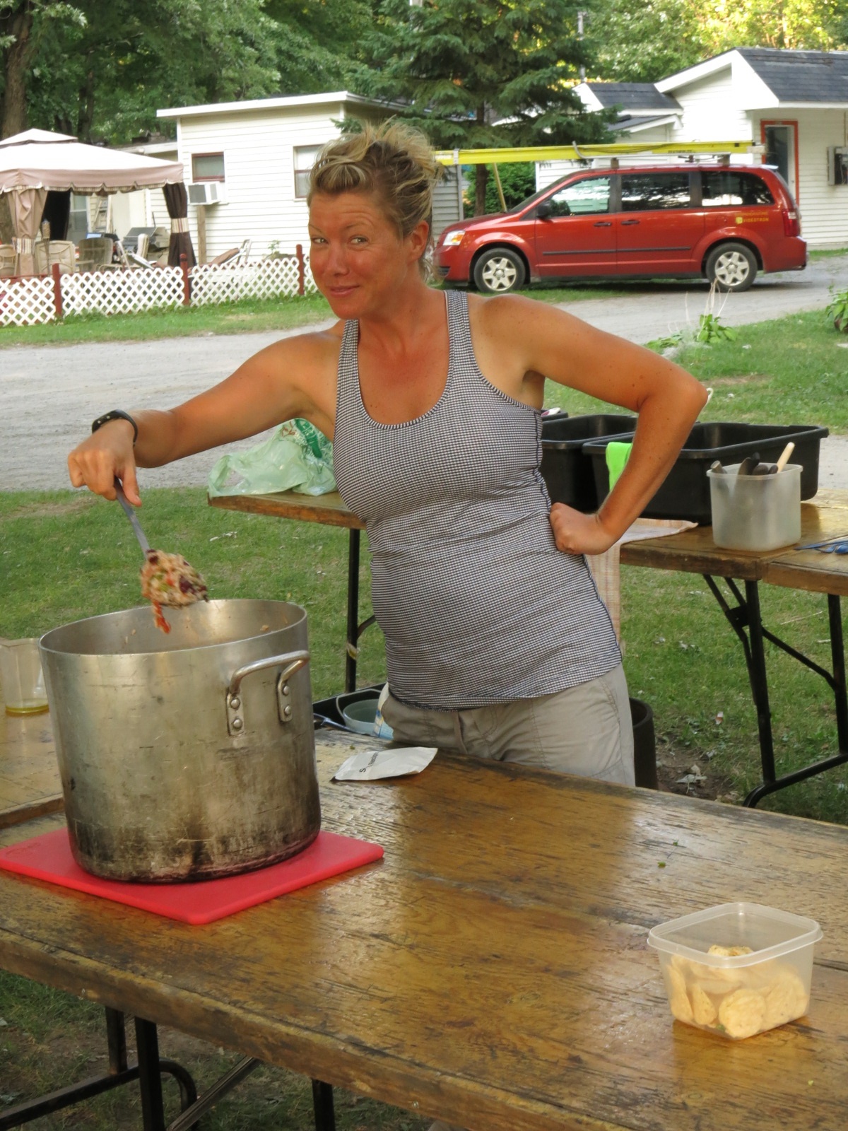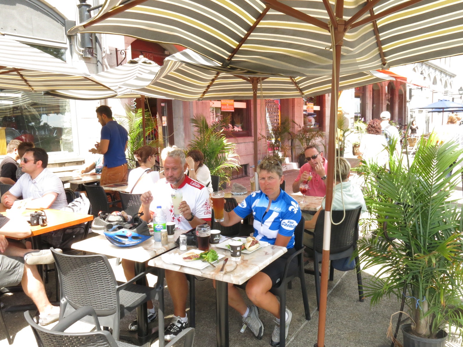 It was nearly 8:00 before the “peloton” arrived, all excited about their tour of Montreal and showing off the bags of bagels they had bought. Unfortunately Myra had taken a tumble when she caught her wheel in a railway track but other than a cut on her eyelid she seemed to be OK.