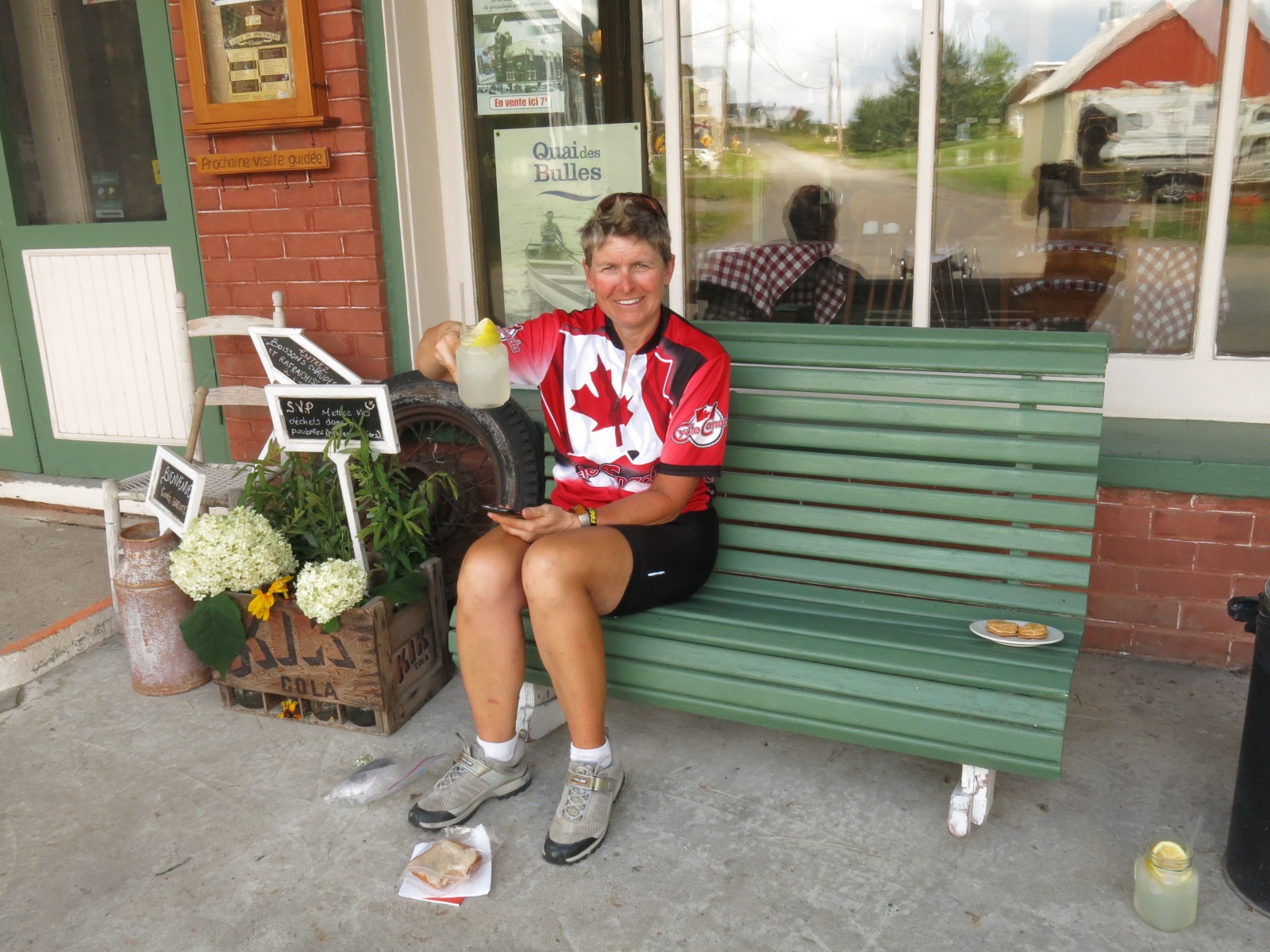 Around 90 km into our ride we came upon a museum/General Store. It was a bit quirky and a whole lot interesting. We bought fresh squeezed lemonade to go with our PBJ sandwiches (my first PBJ since our ride into Ottawa). As we sat in the porch enjoying our lunch a pack of our riders caught up to us. Soon they too were drinking the lemonade.