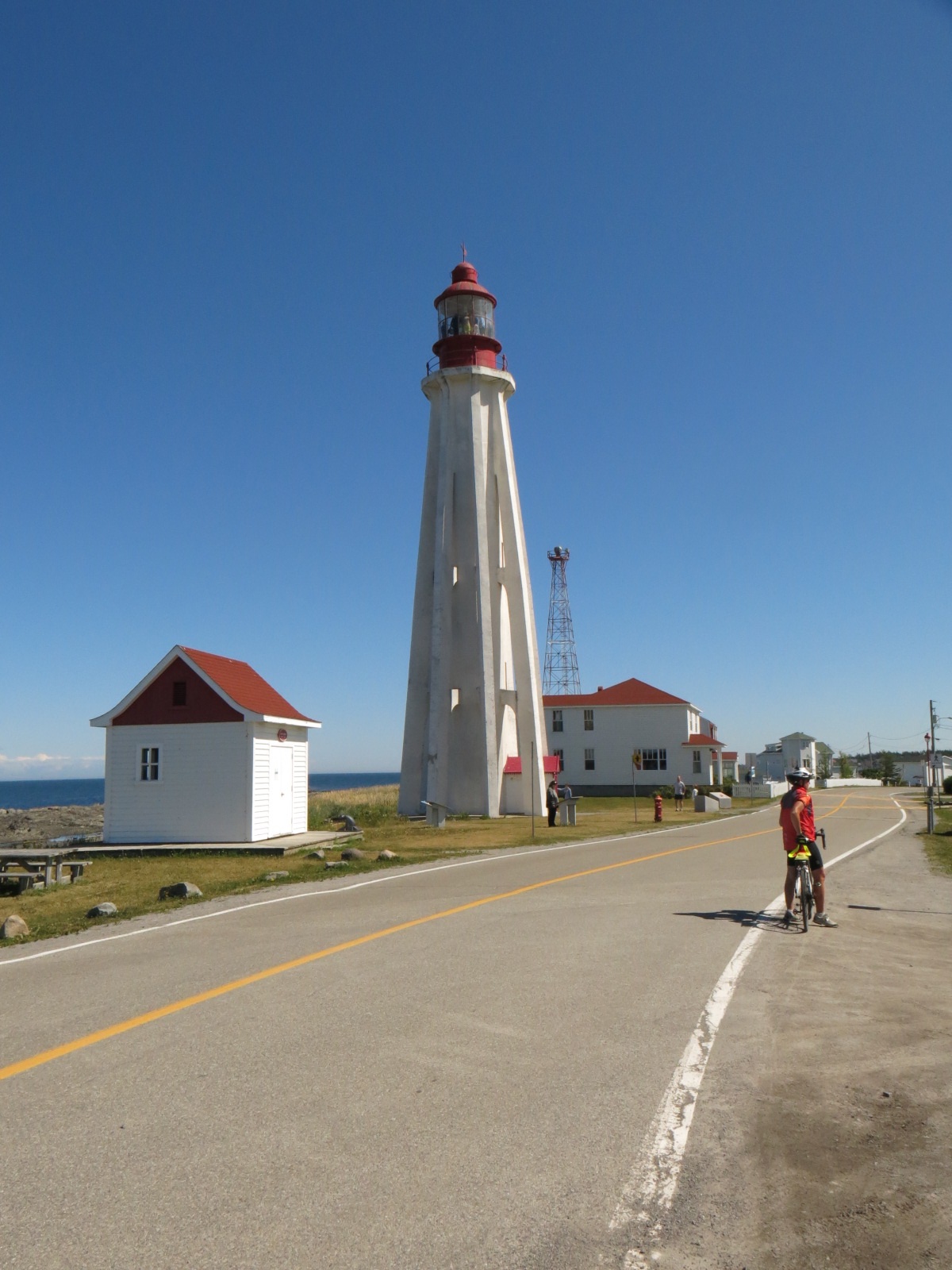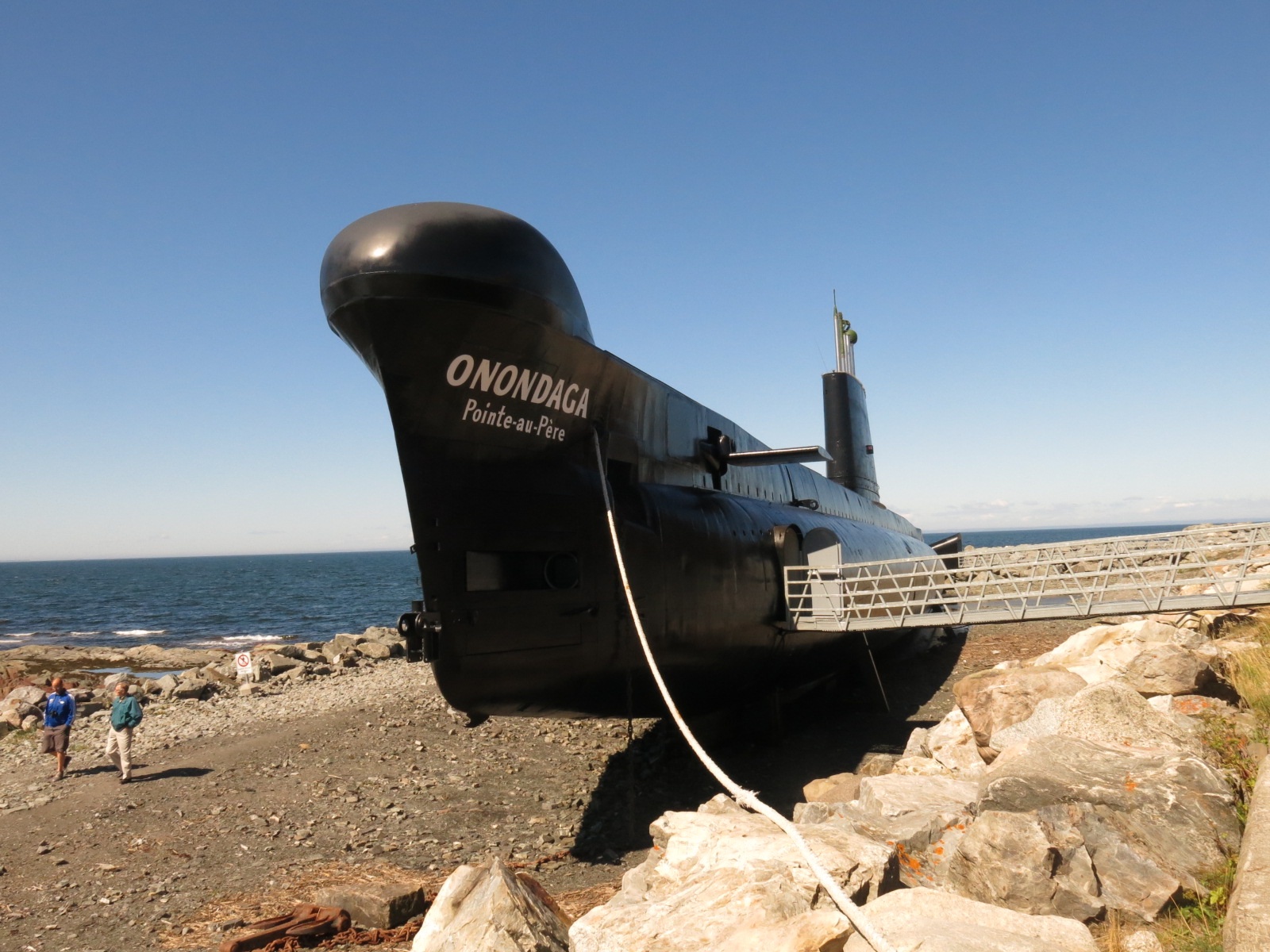 In Rimouski we followed bike paths a long ways along the waterfront. Eventually we came The Empress of Ireland Memorial where they also had a submarine on display (we didn’t tour it although I have toured other subs in marine museums). As I was straddling my bike to take a picture of the lighthouse at the site my bike started to slip. In grabbing for my bike I dropped my camera and it went down hard. While it still appears to work, the zoom feature appears to be toast.