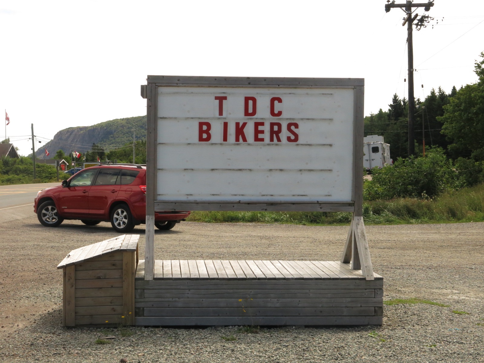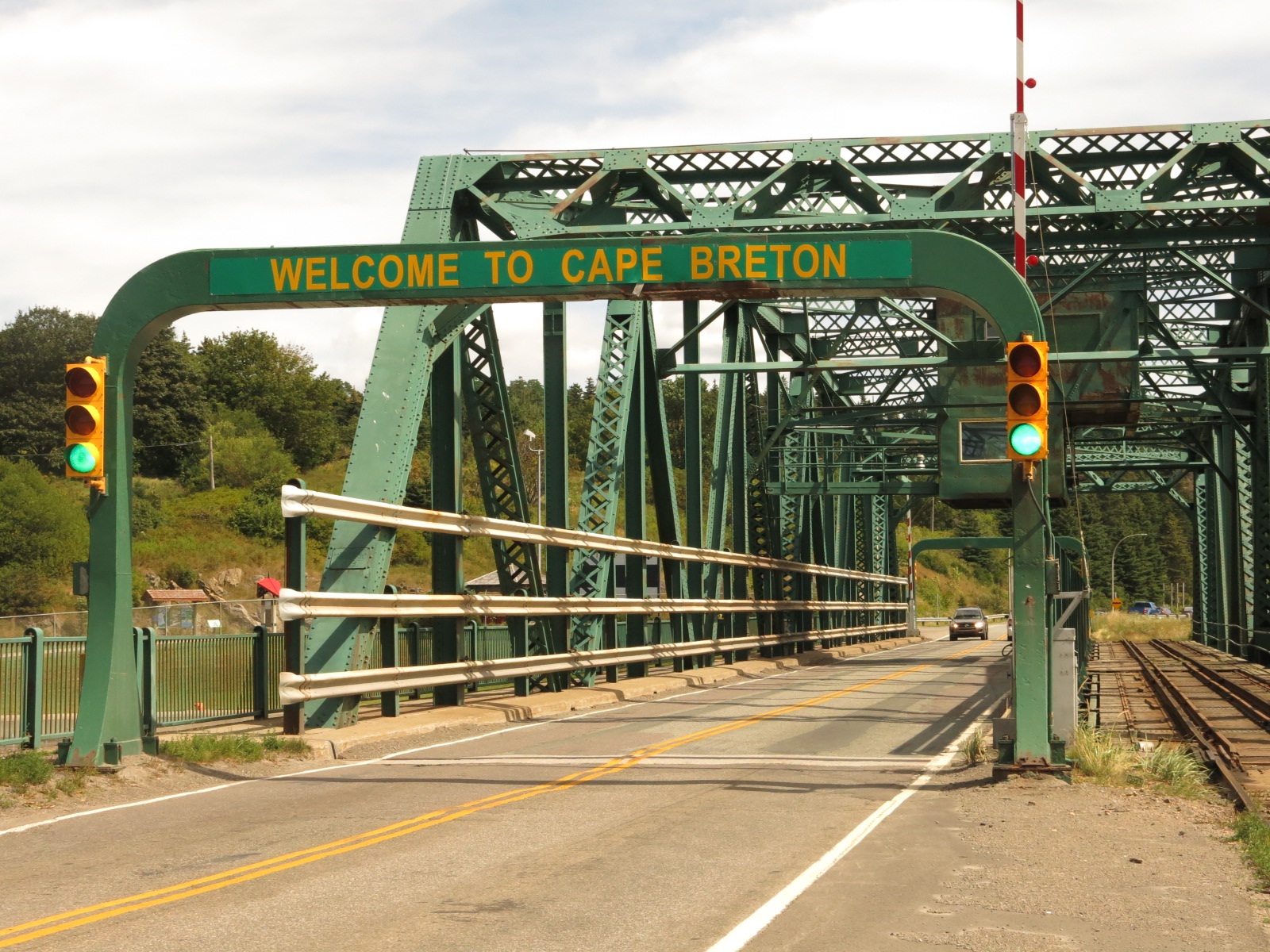 From there we pretty much rode straight through to the Canso Causeway connecting mainland Nova Scotia with Cape Breton Island. Just as we were approaching the causeway we saw a sign in front of the firehall that said “TdC Riders”. We stopped to take a picture but seeing no one around we carried on. We found out later other riders were invited into the hall by a woman whose brother rode the tour last year. She had a woke spread of food laid out. Unfortunately she must have been inside and we missed her.