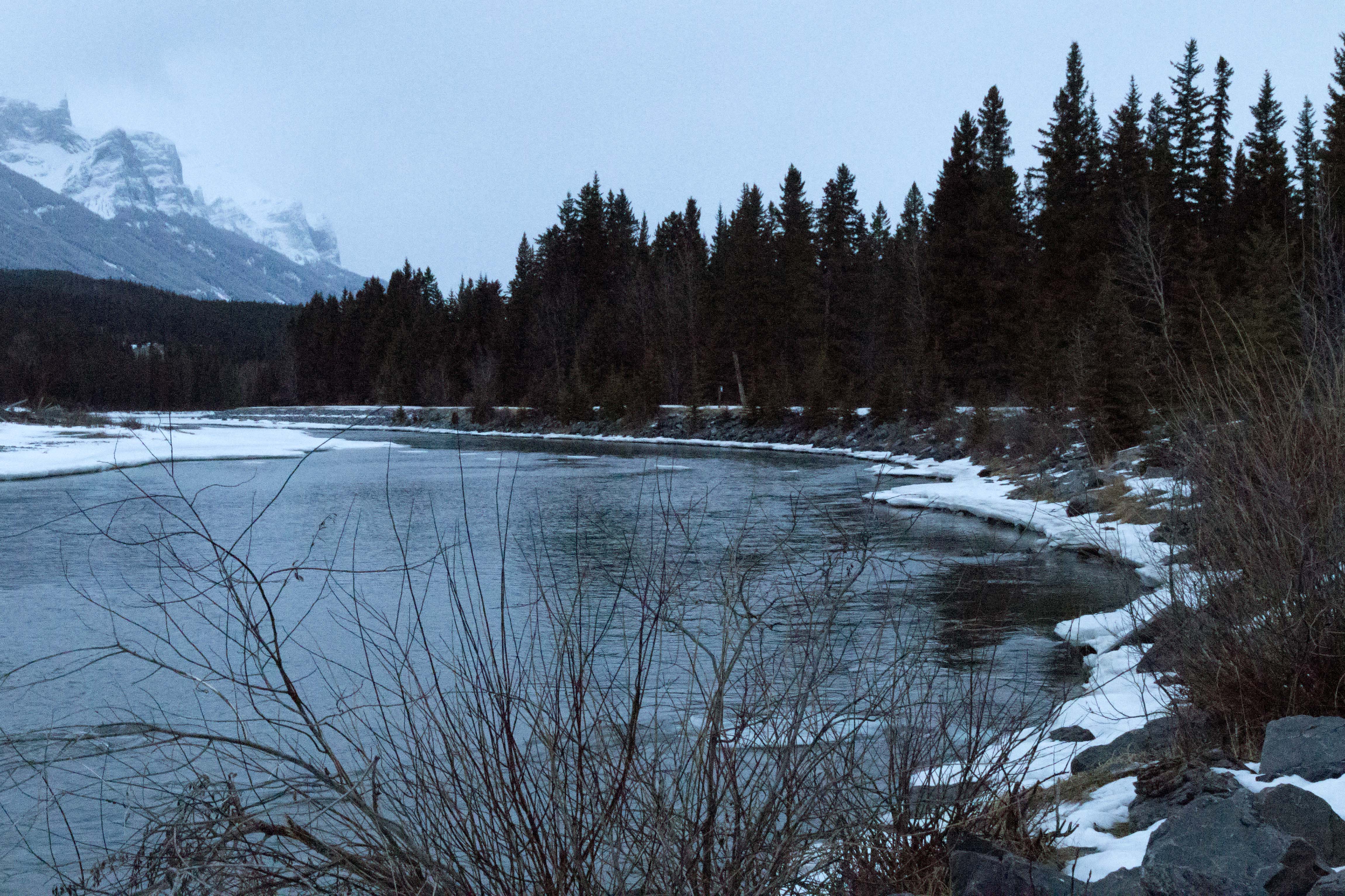 In Canmore we found a location along the Bow River that would serve our purpose for the next morning. We then took some photos at Quarry Lake above Canmore before returning to Banff via Lake Minnewanka (and more photos).