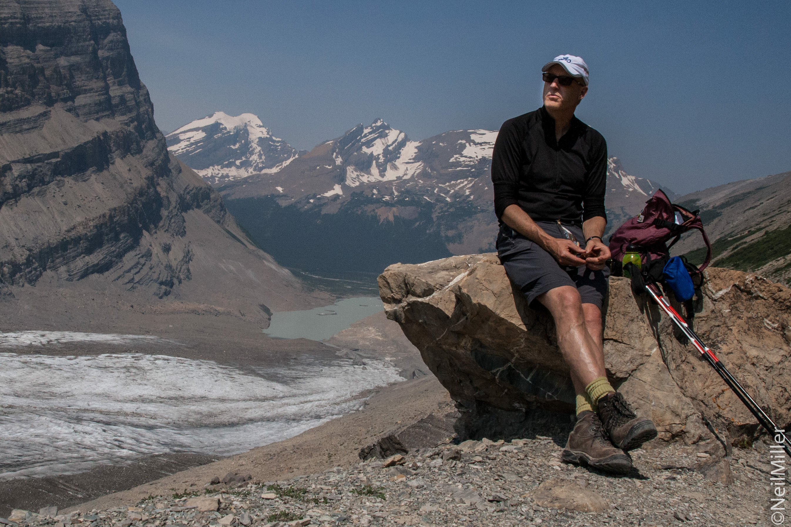 It was definitely easier descending the 4 km from Emperor Falls to Whitehorn. We arrived in early afternoon and had lunch. We spent the afternoon relaxing and enjoying the views. Unfortunately the view was hindered slightly by the smoke that had drifted in from various forest fires in BC and Alberta.