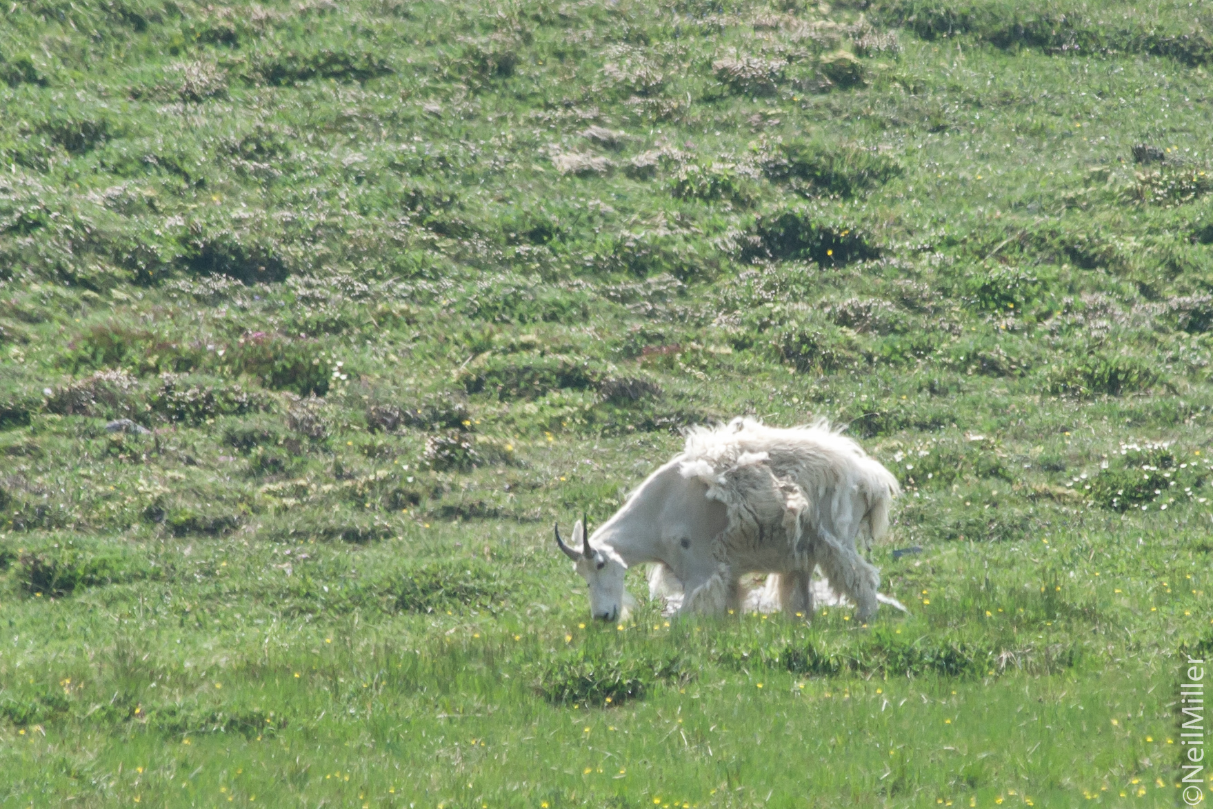 By now my legs and feet were telling me that I’d had enough climbing. We stopped in the meadow for lunch. After a rest and something to eat I regained some energy but decided I would head back to camp. Peter and Brenda elected to return with me while Dave and James decided to press on to the pass, about 45 minutes further. Before leaving we had a good view of a couple of marmots playing around some rocks, as well as some goats that had been slowly getting closer to us on the other side of the stream.