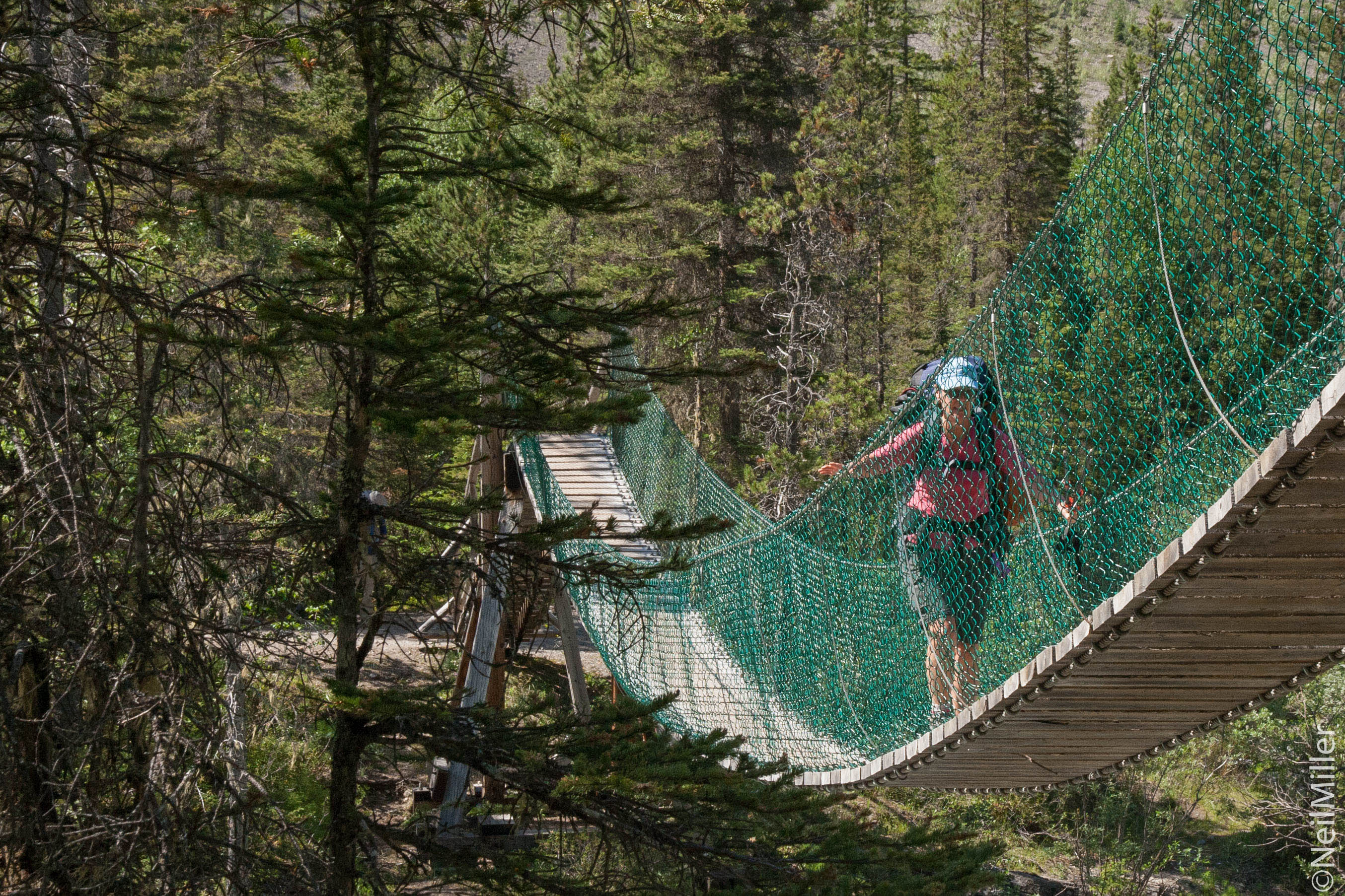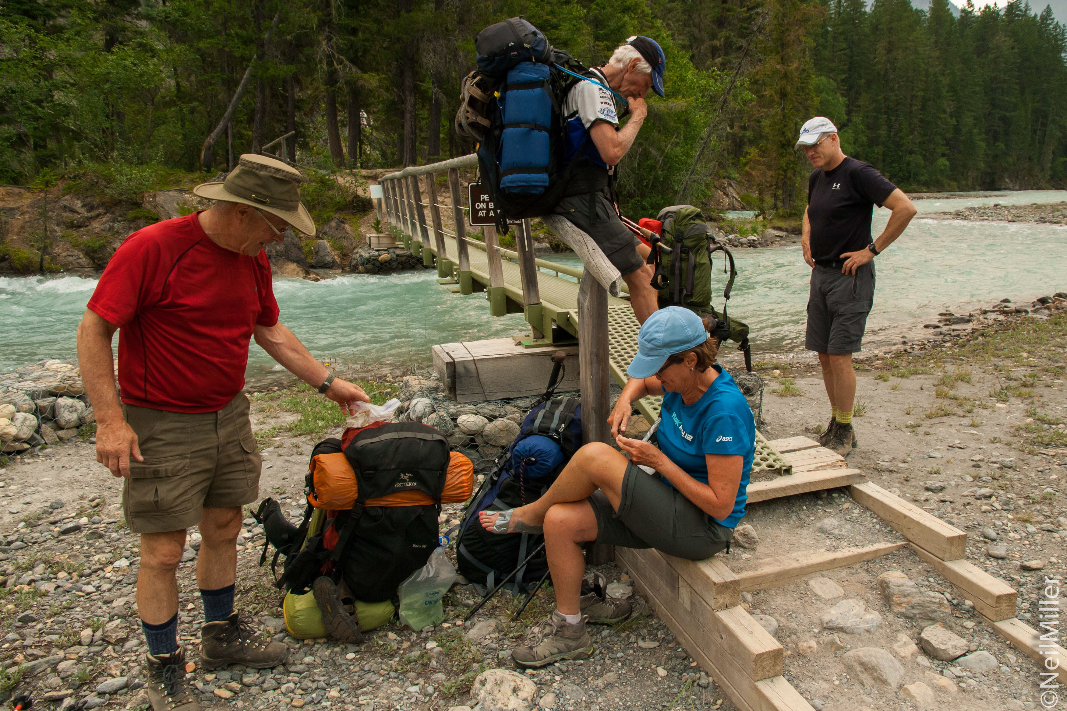 While there are a few short climbs, the trail to Whitehorn Campground is fairly easy going. After crossing a suspension bridge we entered the campground to end our first day, 11 km hike. We managed to find 4 tent pads that were adjacent to each other and soon tents were up and we were relaxing until supper.