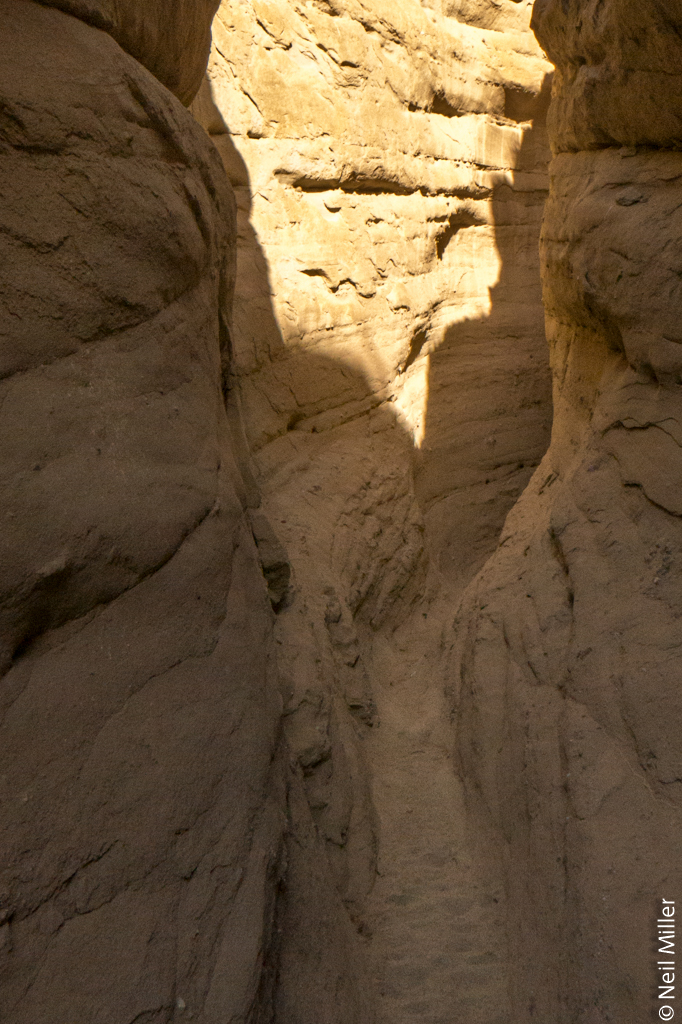 Our return route took a different path through a couple of slot canyons. In some spots the canyons became so narrow that we could only proceed one at a time. Being mainly in shade, the canyons offered a slightly cooler environment than the open road on which we had climbed up to the mine. The scenery through the canyons was quite spectacular.