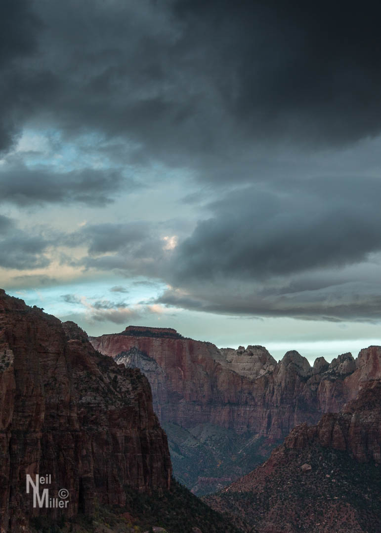 At one point in the day I had a chance to once again “shoot” The Watchman. With the stormy weather, the view this time was quite dramatic and quite different from the sunset shot on the first evening. If at all possible, it pays to shoot the same landscape scene at different times and in different weather conditions!