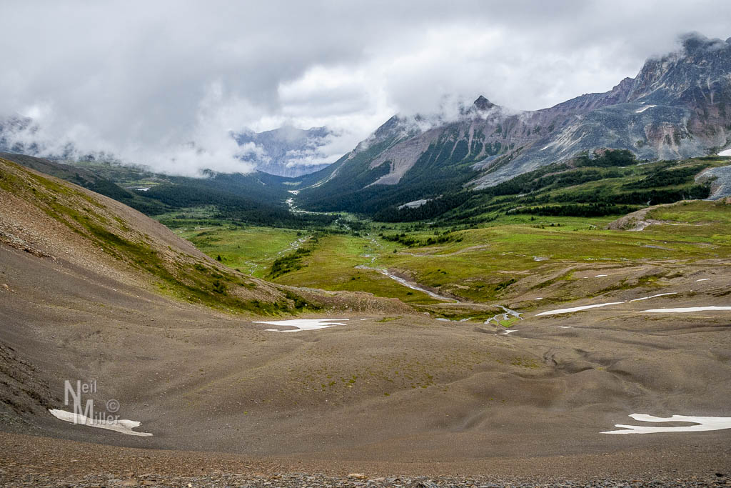 Even though the trail to The Notch was only 2 km it was fairly steep in parts which made for a challenging climb. The last little bit was an uphill climb through a patch of snow. At the top we were greeted with a cold wind and tiny hail pellets. As soon as all of our group was at the top we headed off in hopes of getting out of the wind. While the wind did decrease a bit the clouds rolled in and a light rain started. With the start of the rain my camera got wrapped in plastic and buried in my pack to keep it dry, pretty much ending further photography.