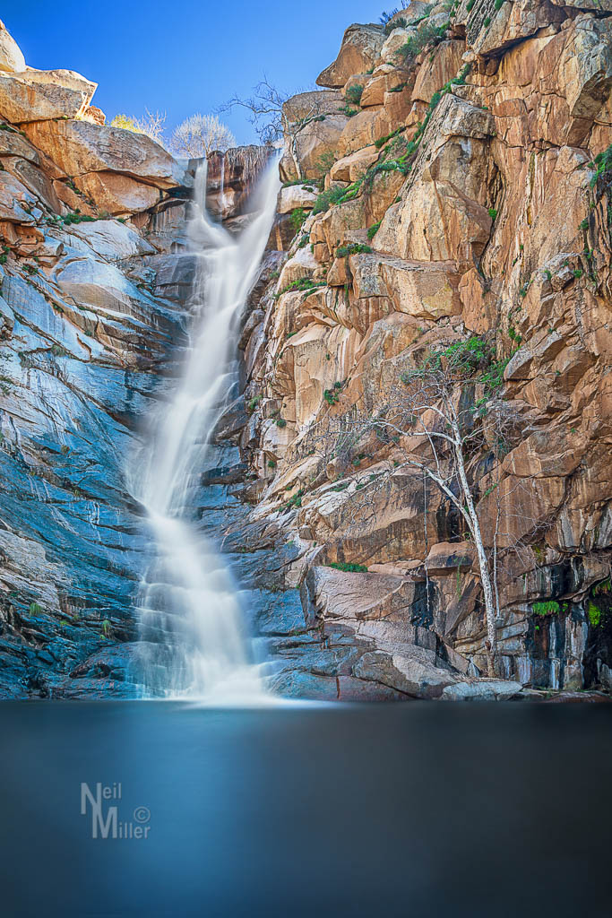 East of Julian, CA in San Diego County, a friend and I hiked into Cedar Creek Falls. The 3-mile downhill hike in is fairly easy other than fording the creek 3 separate times. The return, almost all uphill, is fairly strenuous. However it was worth it for a view of the 80-foot high falls.