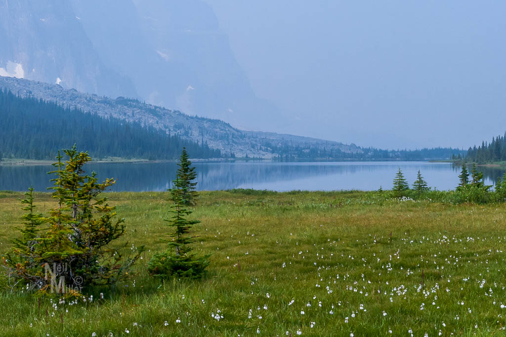 By morning the atmosphere was quite smokey. 4 of us decided to do a day-hike to Moat Lake while the others opted to spend the day at Amethyst Lake fishing and relaxing.