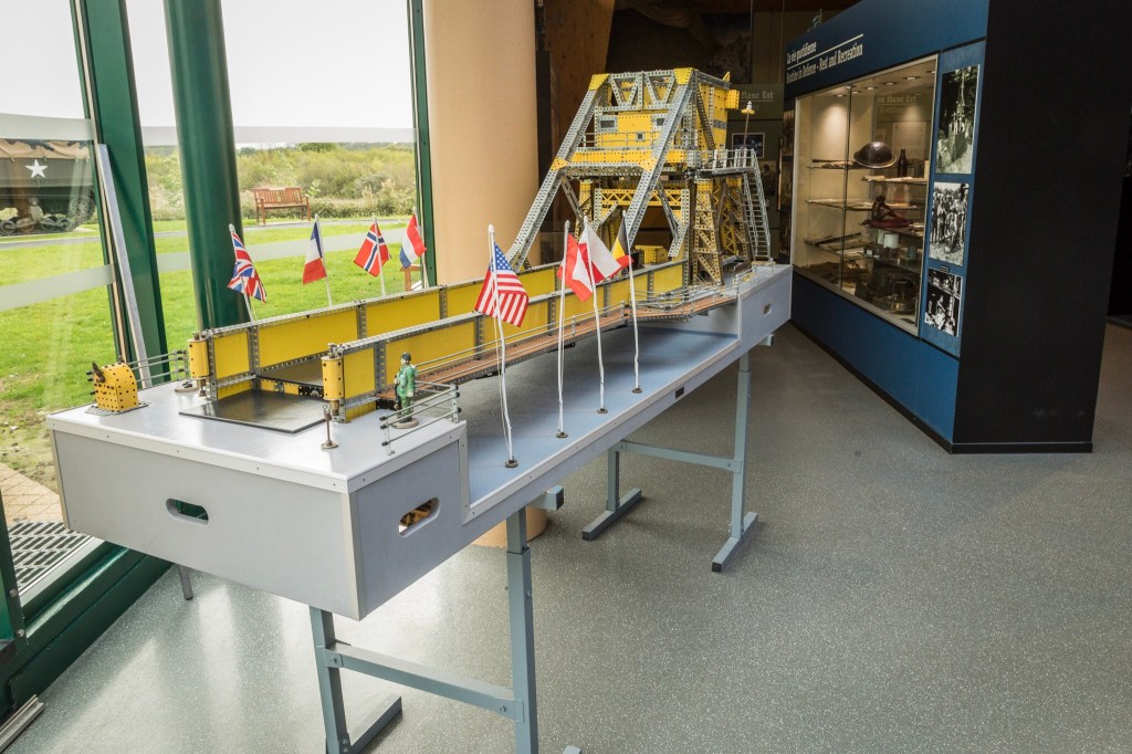 The first day we drove through the beautiful French countryside to the Pegasus Memorial at Ranville. The Benouville Bridge and a nearby bridge at Ranville were taken just before midnight on June 5th by British Paratroopers and troops that landed in gliders. By taking the two bridges a counter-offensive by the Germans against the Allies at the Normandy Beaches was made more difficult. The Benouville Bridge was renamed the Pegasus Bridge in 1944.