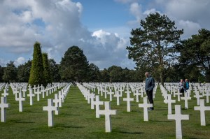 The following day began with a short walk on Omaha Beach then a visit to the American Cemetery just above the beach. Entered through the visitors center, the cemetery and grounds are beautifully maintained. Like at the Canadian Cemetery, one tends to get quite somber while walking amongst the grave markers of these brave young men.