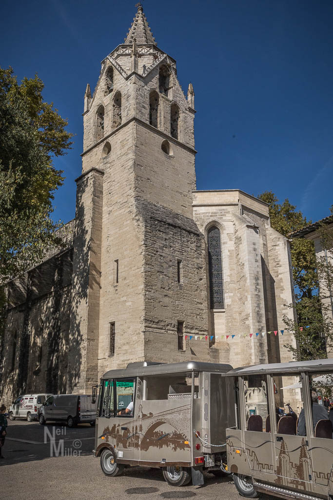 After touring the bridge we walked back up into town along streets lined with, surprisingly, touristy shops! In the Place du Palais, in front of the palaces of the Popes we enjoyed a mid-morning latte before catching a little tram for a tour of Avignon. The tour was pretty good although the bumpy cobblestone streets made it difficult to get many good photos along the way.