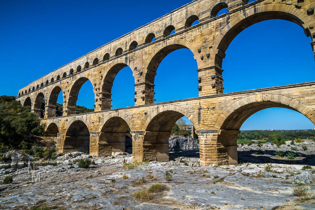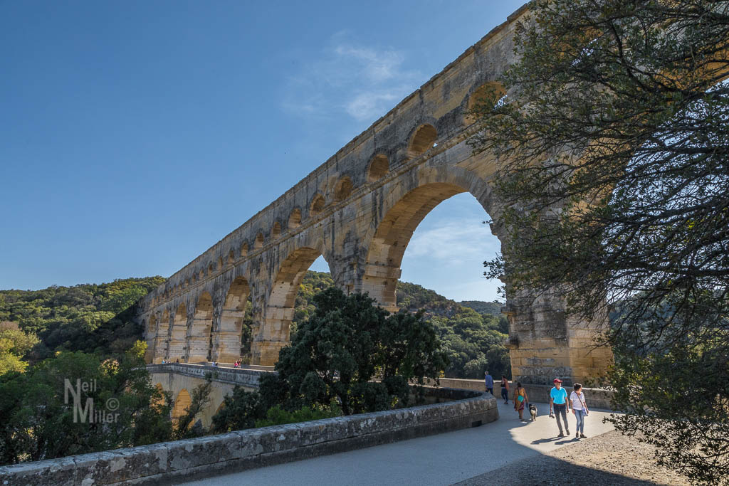 After lunch back at the Place du Palais we set off for Pont du Gard. Built by the Romans in the 1st century, the bridge is actually part of a 50 km aqueduct that carried water from Uzès to Nîmes. It really was an amazing feat of engineering. From one end of the bridge to the other the aqueduct only drops an inch in elevation – enough to keep the water flowing. The water was carried to the homes, fountains and baths in Nîmes. The ancient Romans apparently loved their baths!