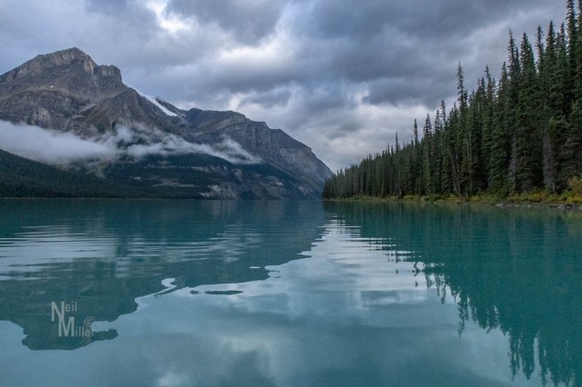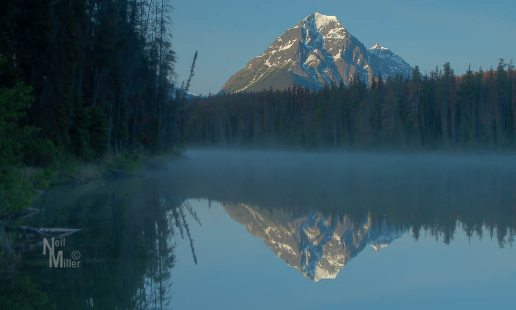 At one of the many lakes in Jasper, I did catch a nice mountain reflection as a thin layer of fog covered the water.