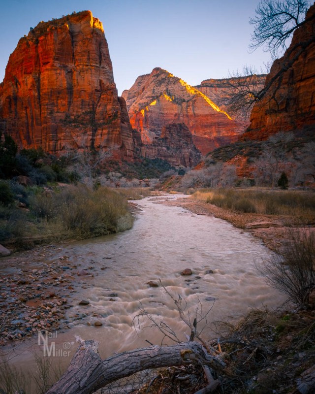 Early morning can yield some beautiful views along the Virgin River such as this one taken near The Grotto.