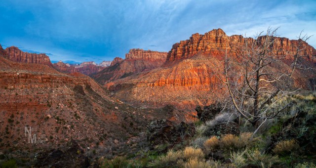 One of the attractive aspects of Zion is the contrast of green cottonwood leaves against the red rock cliffs. With the trees bare this attraction was missing. I’m sure a week or two later it would have been spectacular as the new leaves pop out with that gorgeous green you get in the early Spring. We also had to abandon plans to hike the Narrows as the water flow rate was too high for safety.