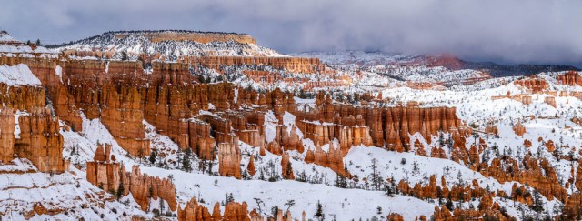 With respect to Bryce, a combination of the winter’s snow along with fresh snowfall while we were there meant that most of the park was closed to vehicle access. As well, the trails below the rim were closed which meant that any photography involved shooting down into the canyon. I suspect that there are better shots to be had if you could get down below the rim and shoot across at the formations rather than down on them from above.
