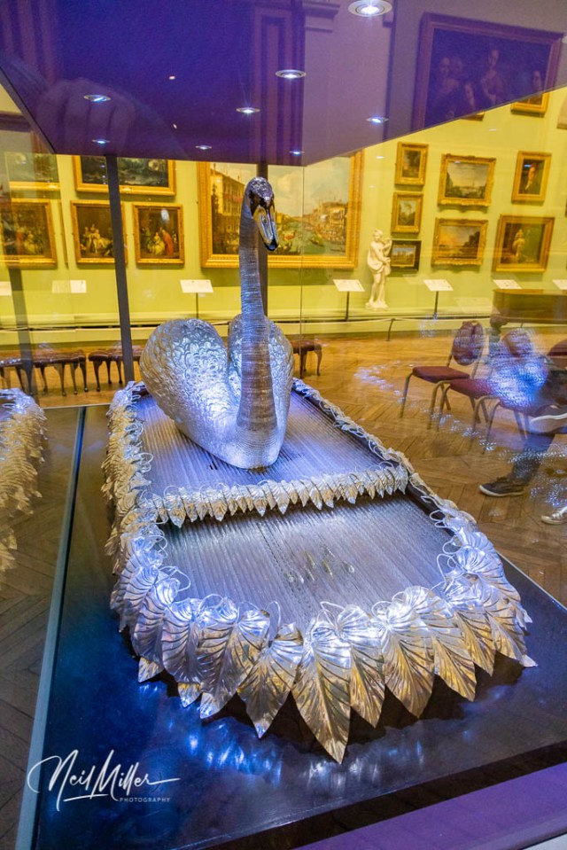 Another absolute treasure located on the edge of the town is the Bowes Museum. The museum was actually built for that purpose in the 19th Century by John and Josephine Bowes. The couple were collectors who built the museum to share their art with the public. Aside from a world class collection of fine art, china, silver, furnishings and other items of decorative art, the museum houses the amazing Silver Swan. Crafted out of silver, the automaton dates back to 1793. Once a day, a museum employee gives a little talk about the swan, then winds up the 3 mechanisms and the swan performs. It first preens its back then plucks a fish from the water and swallows it.