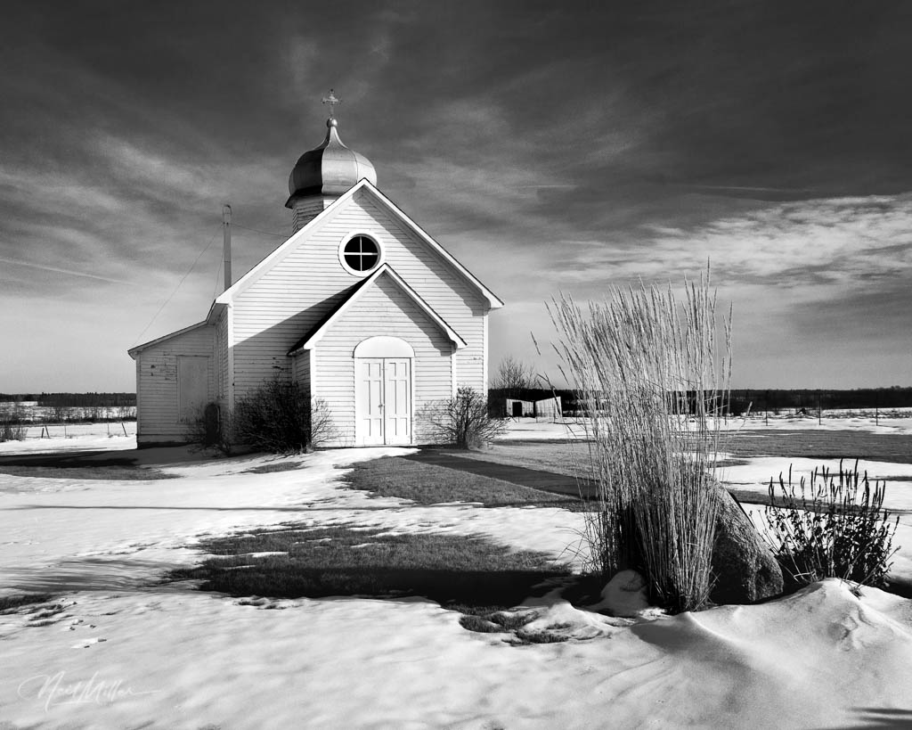 Common on the prairies is the sight of a church seemingly in the middle of nowhere.