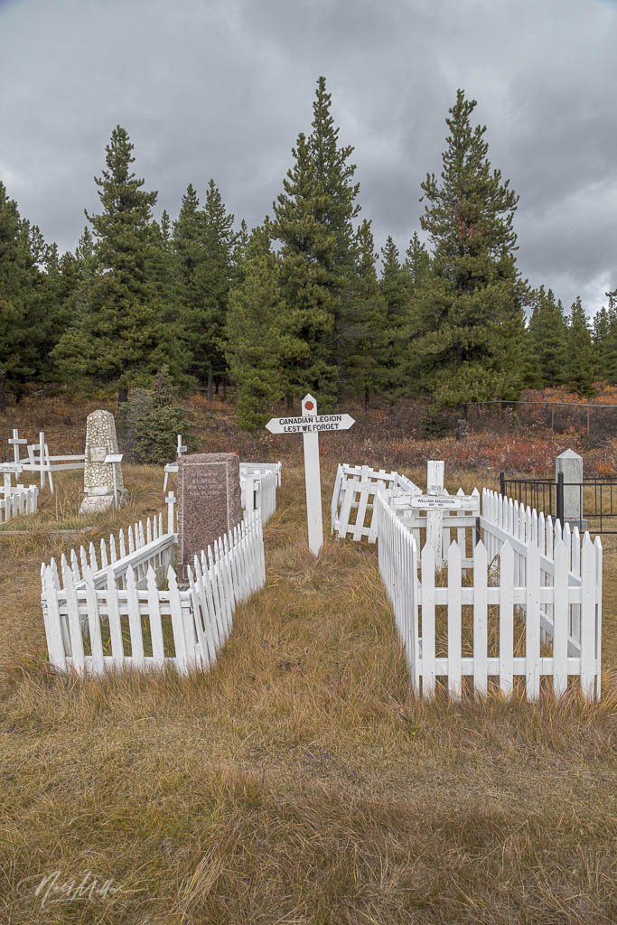One interesting location I came across was the Mountain Park Cemetery, which is at the highest elevation of any cemetery in Canada. The huge coal deposits in the area were discovered in 1895. The Mountain Park Coal Company was established in 1914 and a railway was constructed from Hinton to the mine and newly developed town of Mountain Park. At its peak, the once thriving town had a population of about 1500. Falling demand for coal resulted in the closure of the mine in 1950 and the town was soon abandoned. All that remains today are the remnants of a few foundations and the cemetery. In 1997 a group of volunteers, comprised of former town residents, family and friends, restored the overgrown cemetery. It continues to be maintained by volunteers.