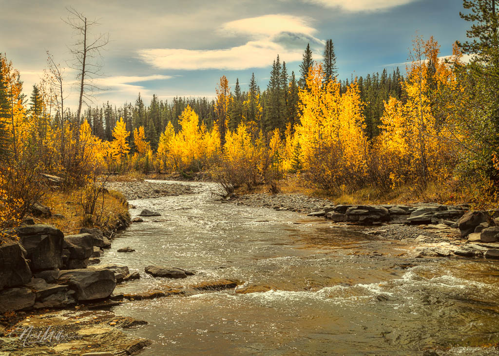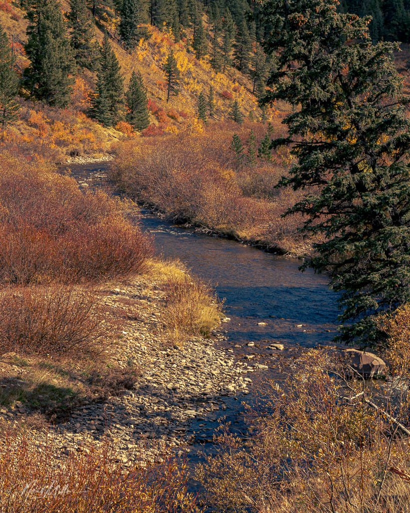 There was no difficulty finding Fall colors, although in Alberta, the colors consist of mainly yellow and orange. Occasionally one finds patches of red brush to add a bit more color, but we certainly don’t get the range of rich colors experienced on the East coast.