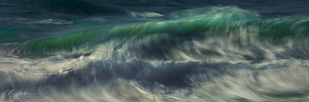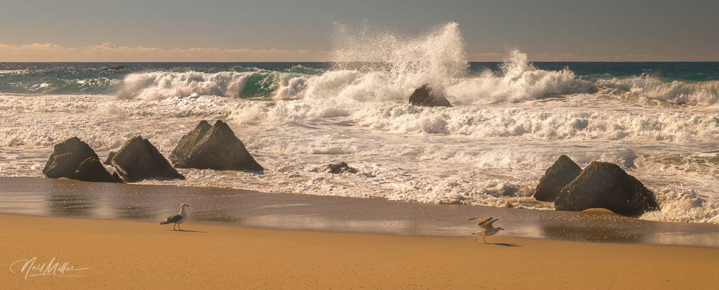 In these images I wanted to capture the power and motion of the waves. In the first one, I like the addition of the two gulls in the foreground.