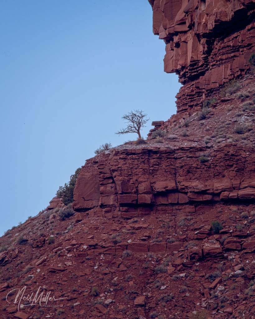 As the sky was getting lighter, I noticed this lone tree. I liked how it was framed by the cliff face.