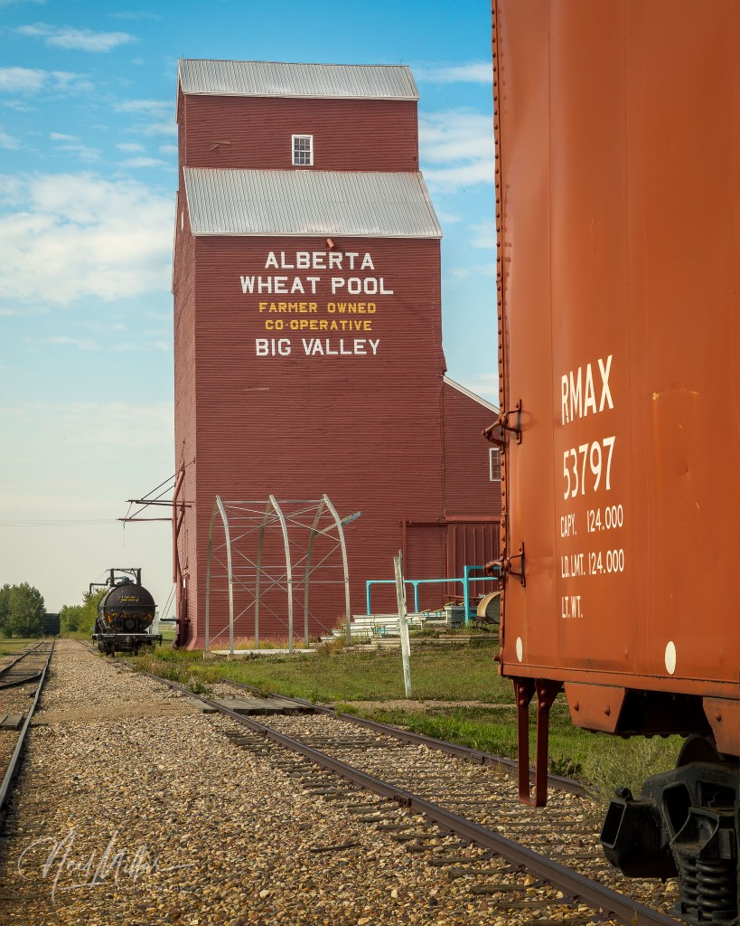 Our first stop on Day 2 was the village of Big Valley. Originally a center for ranching and farming, the village really came into being when the Canadian Northern Railway laid tracks through the area and established Big Valley as a major terminus. It became a village in 1914 and attained town status in 1920 with a population of over 800. Ranching, farming, railways. coal mining and oil have all played a part in the history of Big Valley. Today the population is about 350.