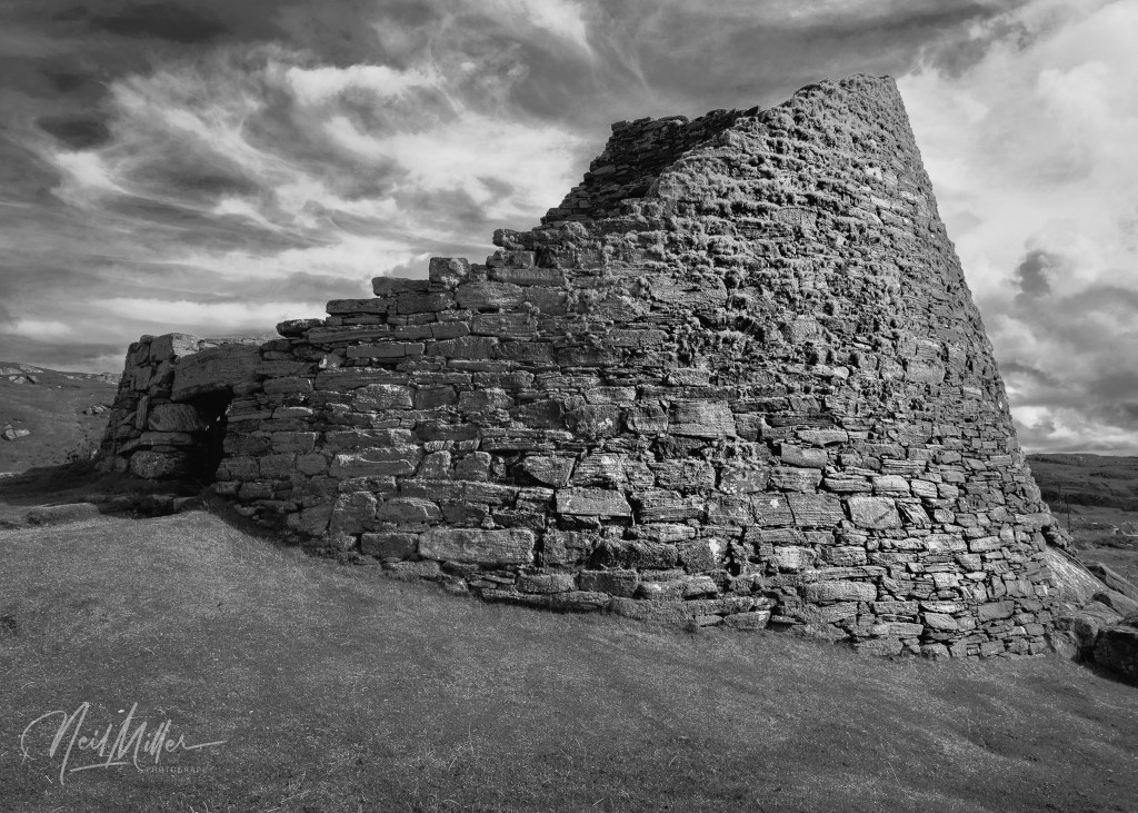 Dating back to the Iron Age, a “broch” is a double walled stone tower that is thought to have served as a fortified dwelling. One of the largest remains of a broch on Lewis is the Carloway Broch also known as Dun Carloway Broch. It rises to a height of 9 meters.