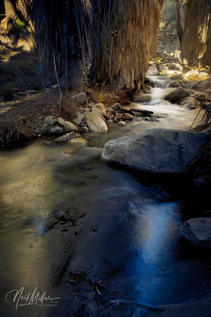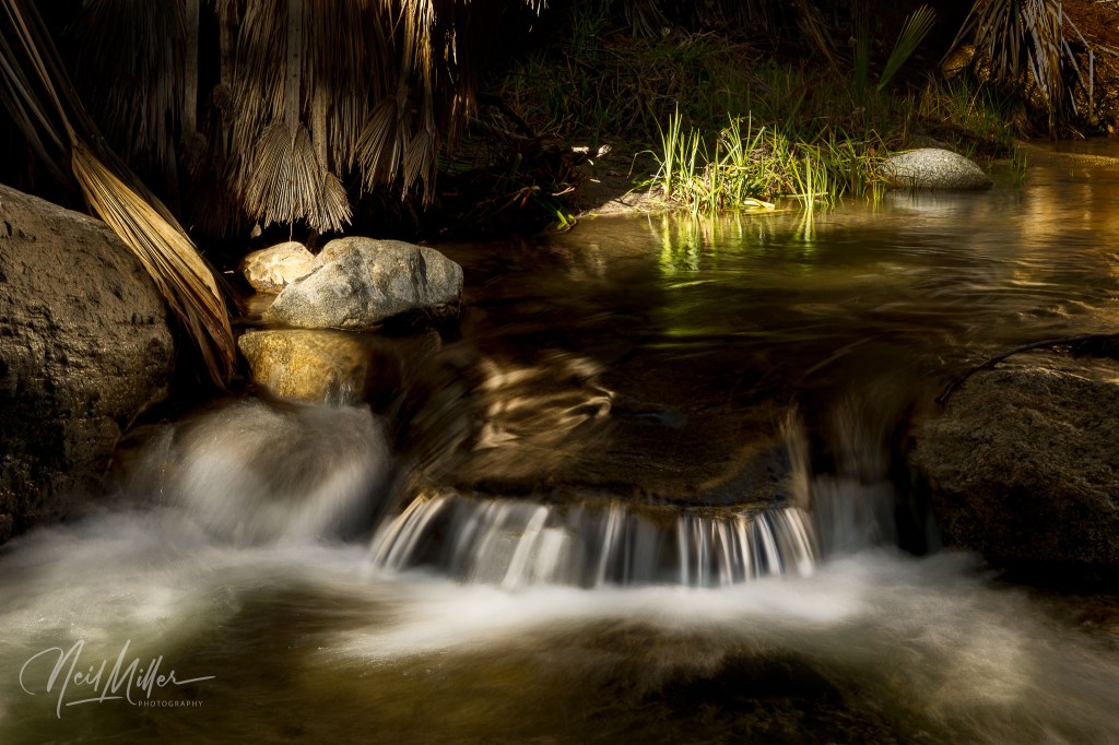 Recently I went on a little hike up Andreas Canyon. The canyon is part of Indian Canyons on the edge of Palm Springs, CA. This is a short, easy hike of about 2 miles. The little stream that runs through the canyon had a greater flow than I can recall on prior visits. As a result there were lots of little waterfalls. Given that I love photographing waterfalls, it took me quite a while to hike up to the top of the canyon.