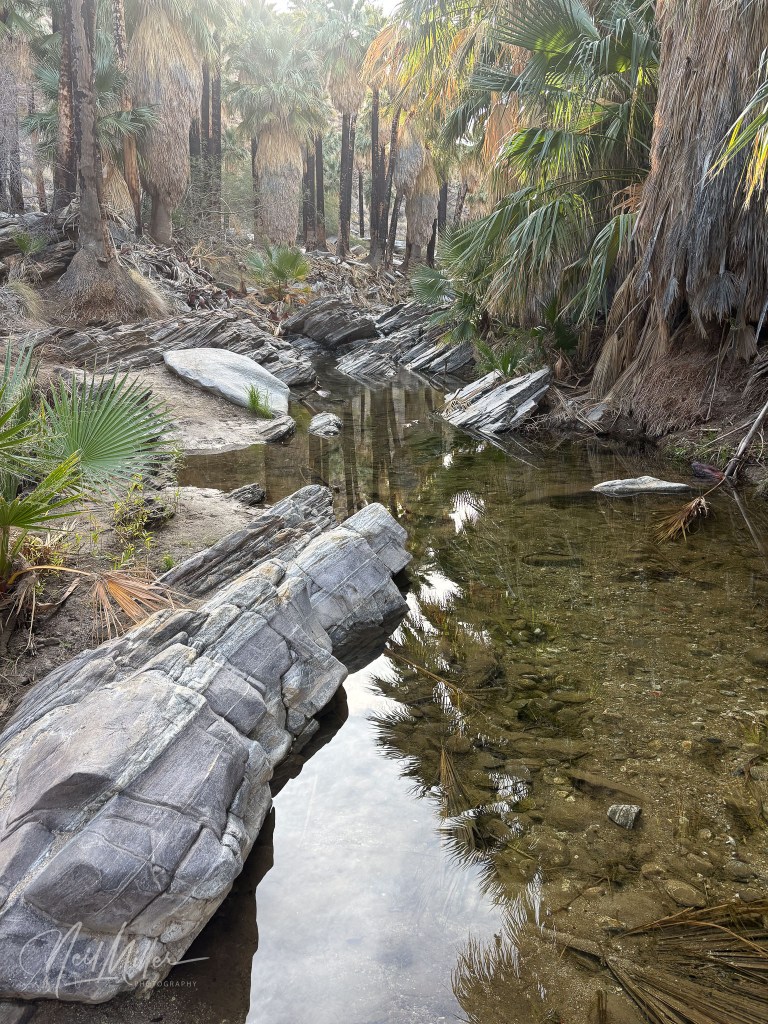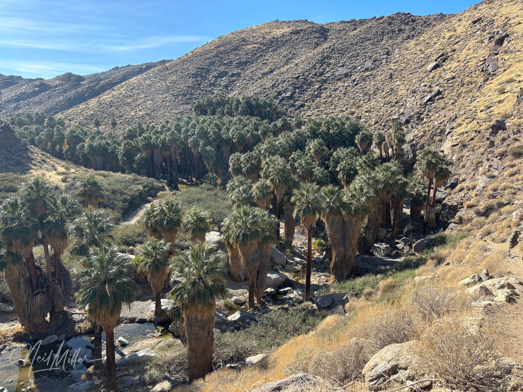 The Palm Canyon to Stone Pools hike is a 6 mile out and back trail with an elevation gain of about 900 ft. After the first mile or so hiking through the palms in Palm Canyon, you begin the climb our of the canyon. At the end you are rewarded with some beautiful little stone pools and small waterfalls. It’s a great spot to relax and enjoy a snack before returning the way you came.