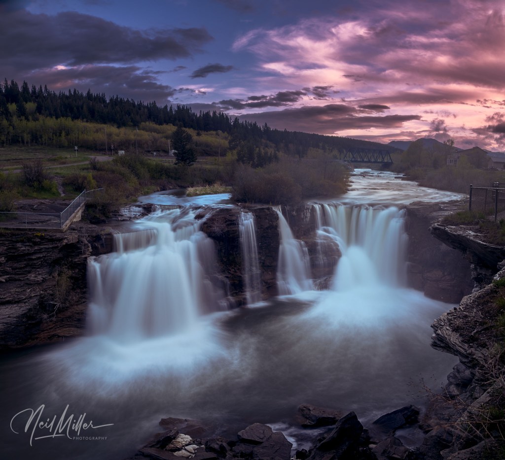 About a 15 minute drive from Pincher Creek is Lundbreck Falls. I visited at both evening and early morning. Below are several views of the falls.
